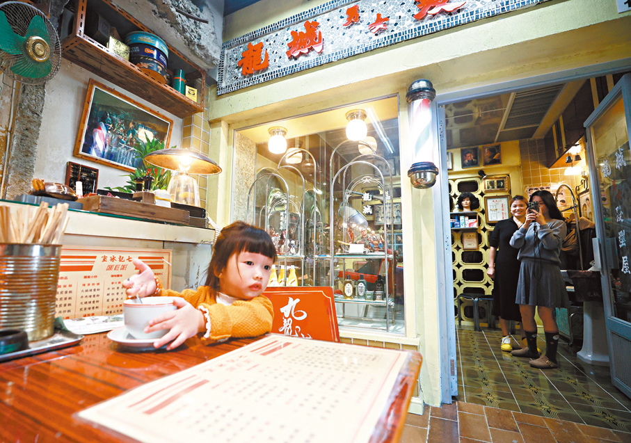 ●市民帶小朋友到九龍城的《九龍城寨光影之旅》展覽參觀。 香港文匯報記者郭木又 攝