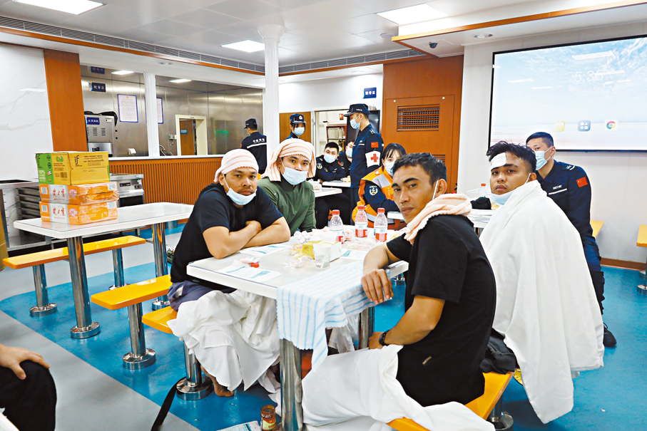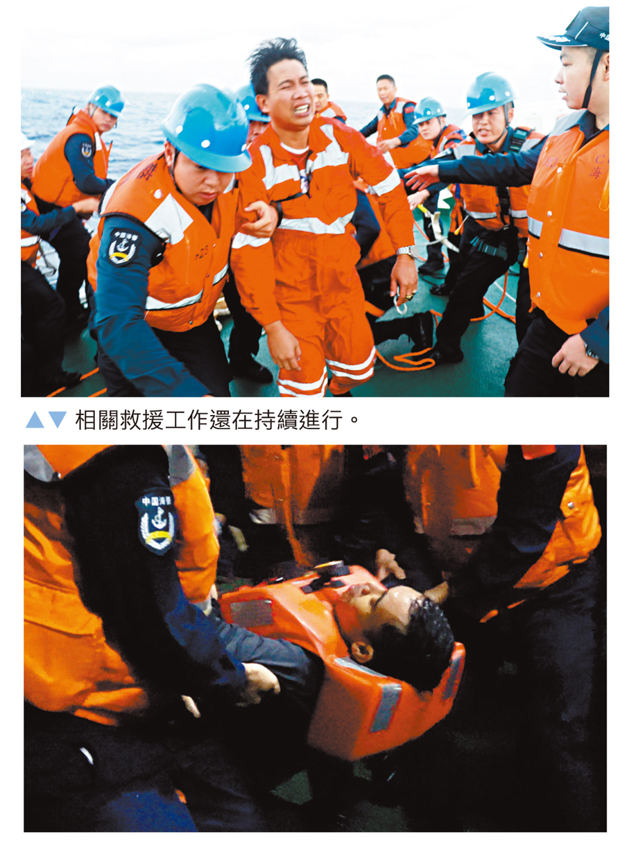 23日凌晨4時28分,首批抵達現場的中國海警艦艇發現並救起了第一個救生筏上的4名遇險船員。由於現場海況惡劣,風高浪急,給救援帶來極大困難。截至23日18時,經多方力量全力協同救援,已成功救起17人,其中2人被救起時已無生命體徵。現場艦艇仍在相關海域繼續搜尋其餘4名船員。