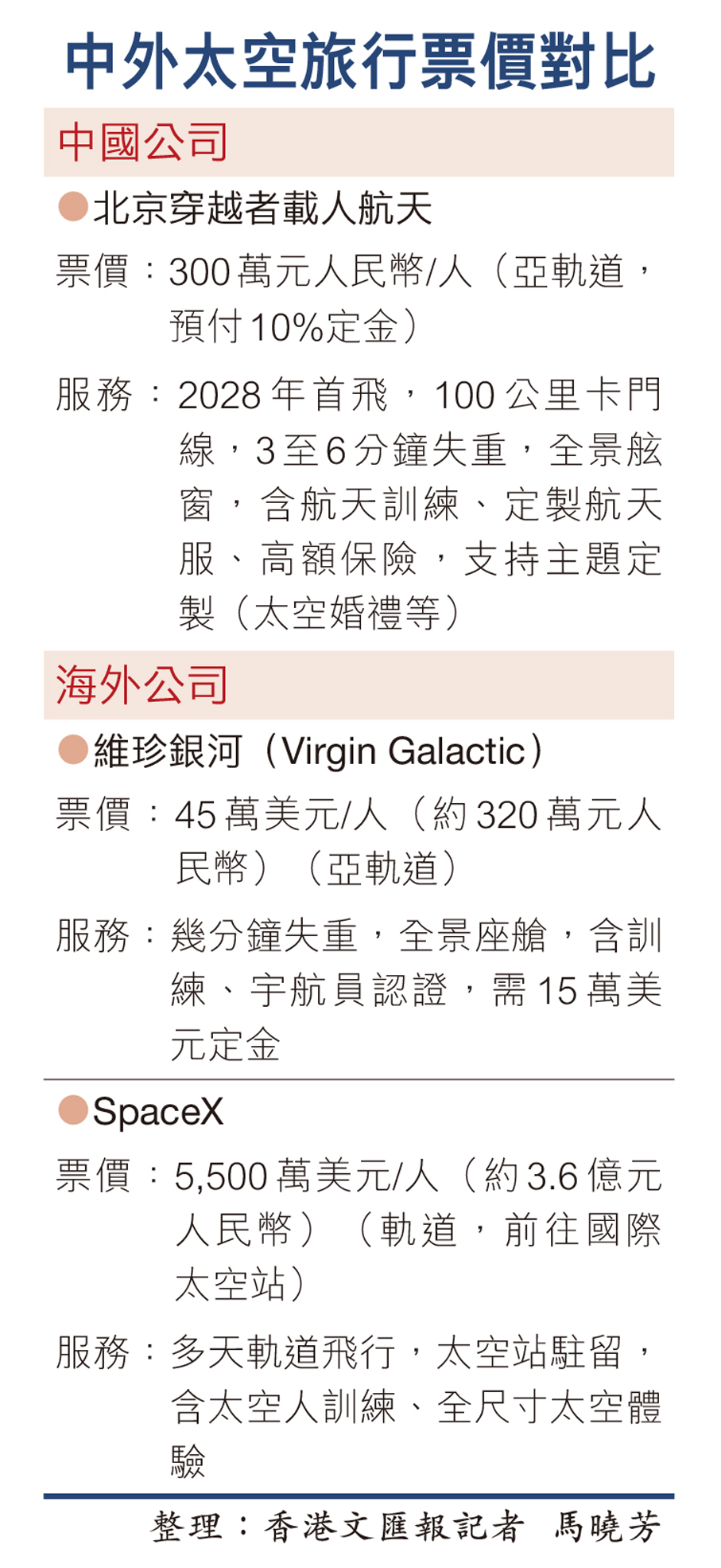 據悉,穿越者壹號(CYZ1)亞軌道飛船計劃在2028年前後實現首飛,可將乘客運送至距離地面100公里的「卡門線」,體驗5至10分鐘的失重,俯瞰地球全景。2032年開始,穿越者貳號(CYZ2)軌道級載人飛船飛到距離地面400公里的軌道,進行多人多天的在軌駐留。2038年,穿越者三號(CYZ3)地月飛船實現飛躍38萬公里,進入月球軌道。此次預售船票定價300萬元/張,預付10%定金即可鎖定名額,相較於國際同類項目的票價更具競爭力。