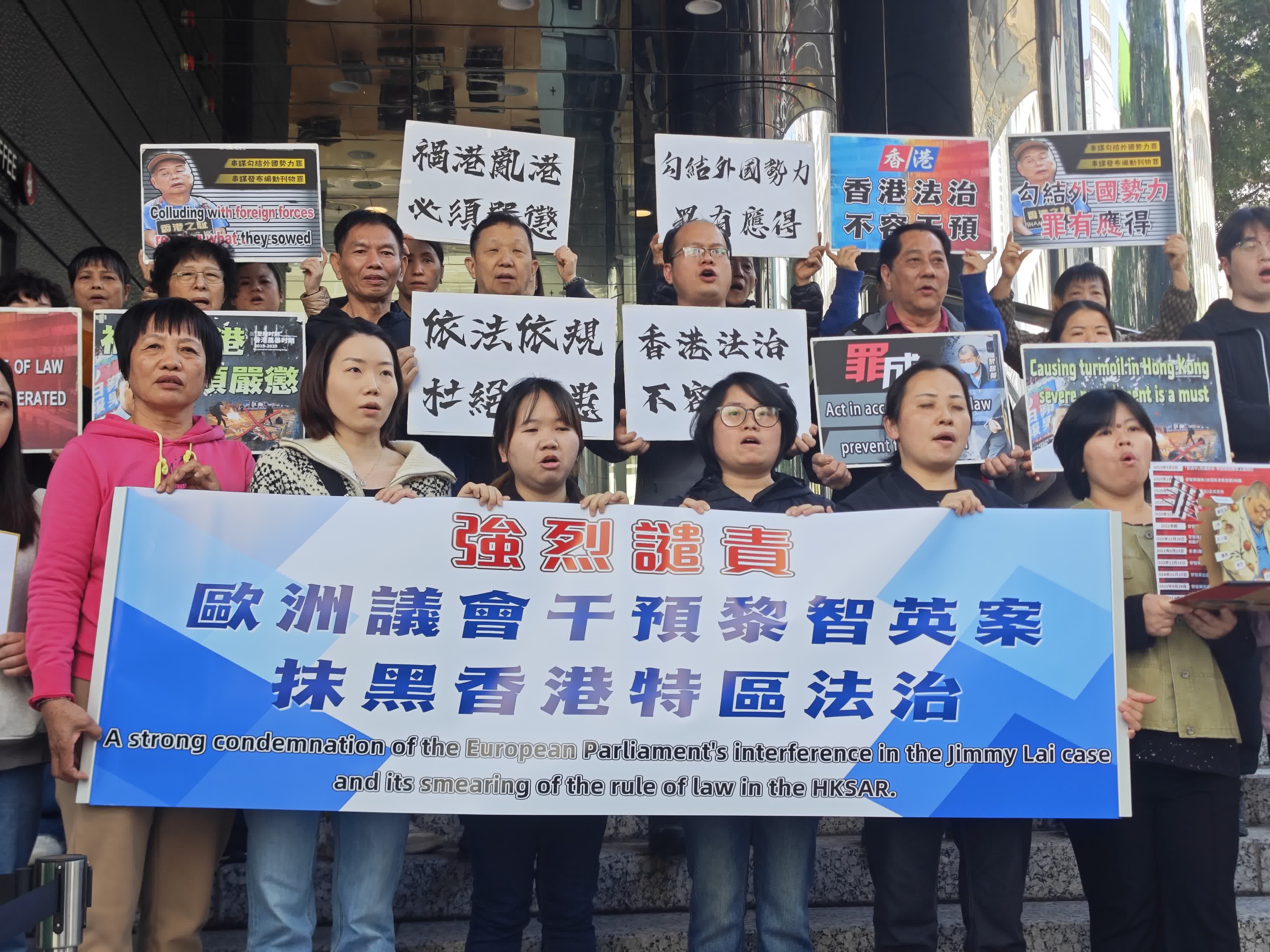 香港文匯報訊 近日,美國及歐洲議會紛紛對香港法庭依法審理黎智英案指手畫腳,歐洲議會再次通過涉及香港的決議,抹黑特區民主法治狀況,叫囂對港「制裁」,企圖藉此干預香港特區司法、干涉中國內政。多批市民團體今日(24日)到歐盟駐港辦事處外集會,抗議歐洲議會雙重標準,強烈譴責歐洲議會妄議黎智英案,干涉香港事務,抹黑香港特區法治。