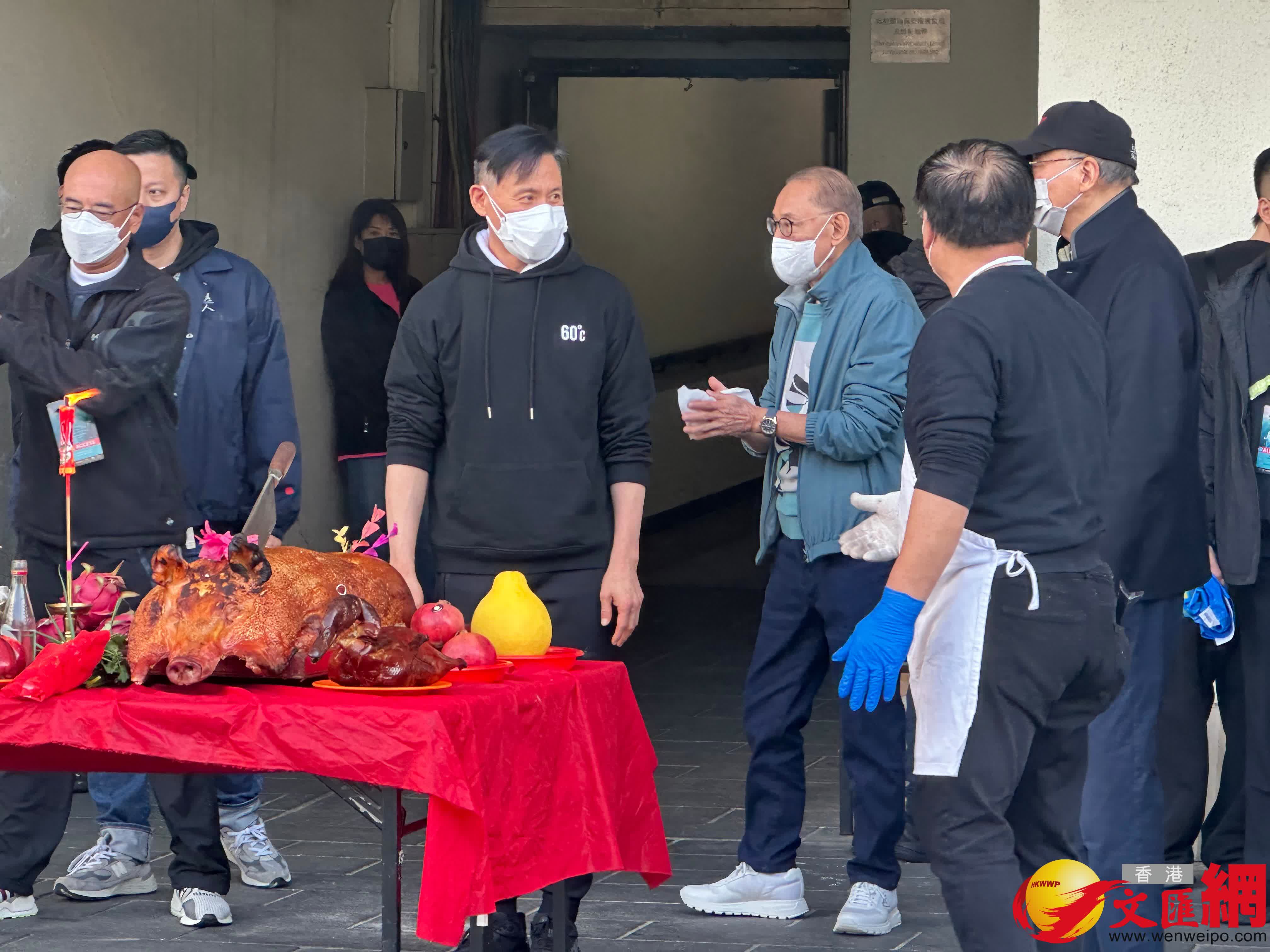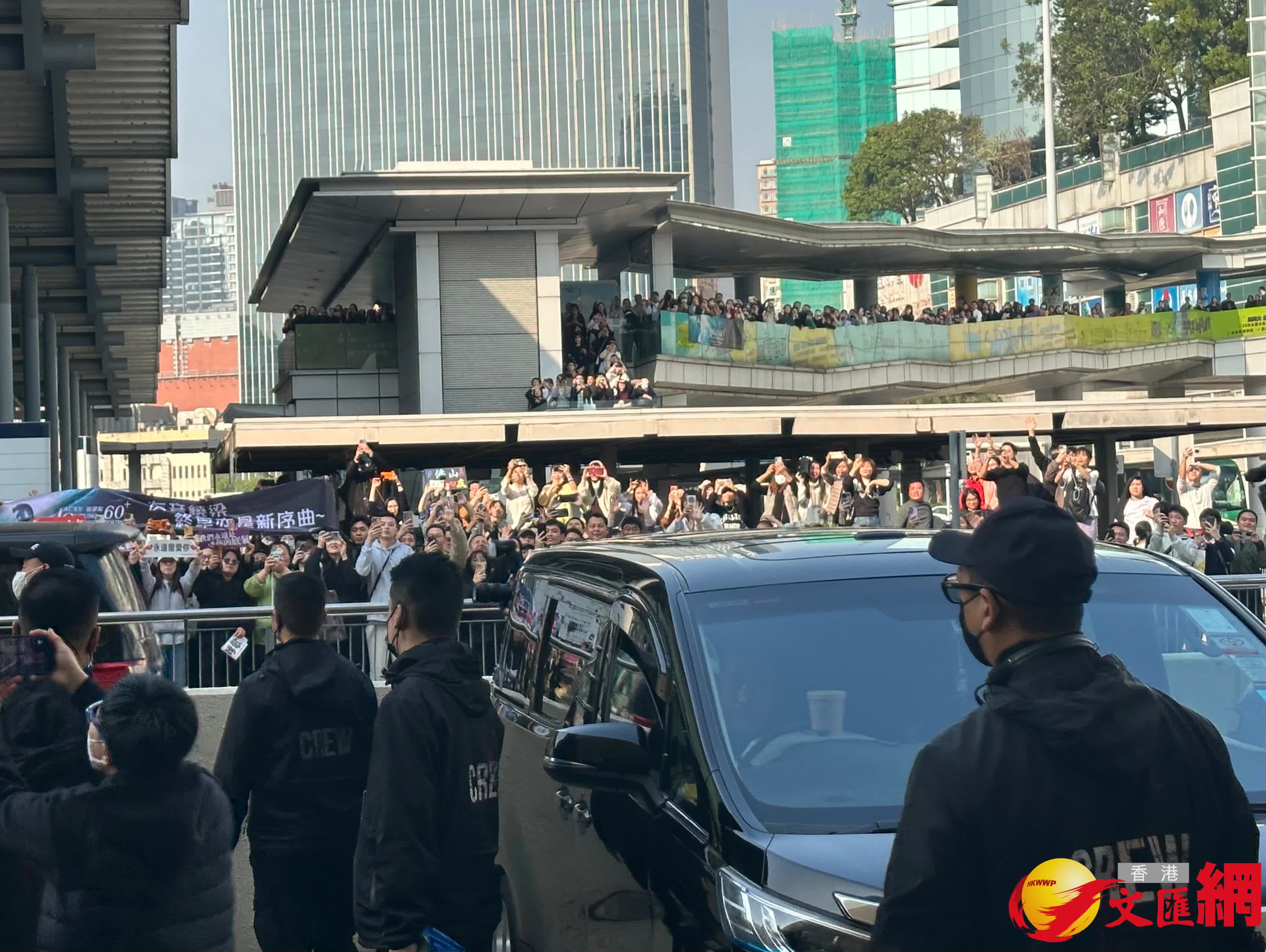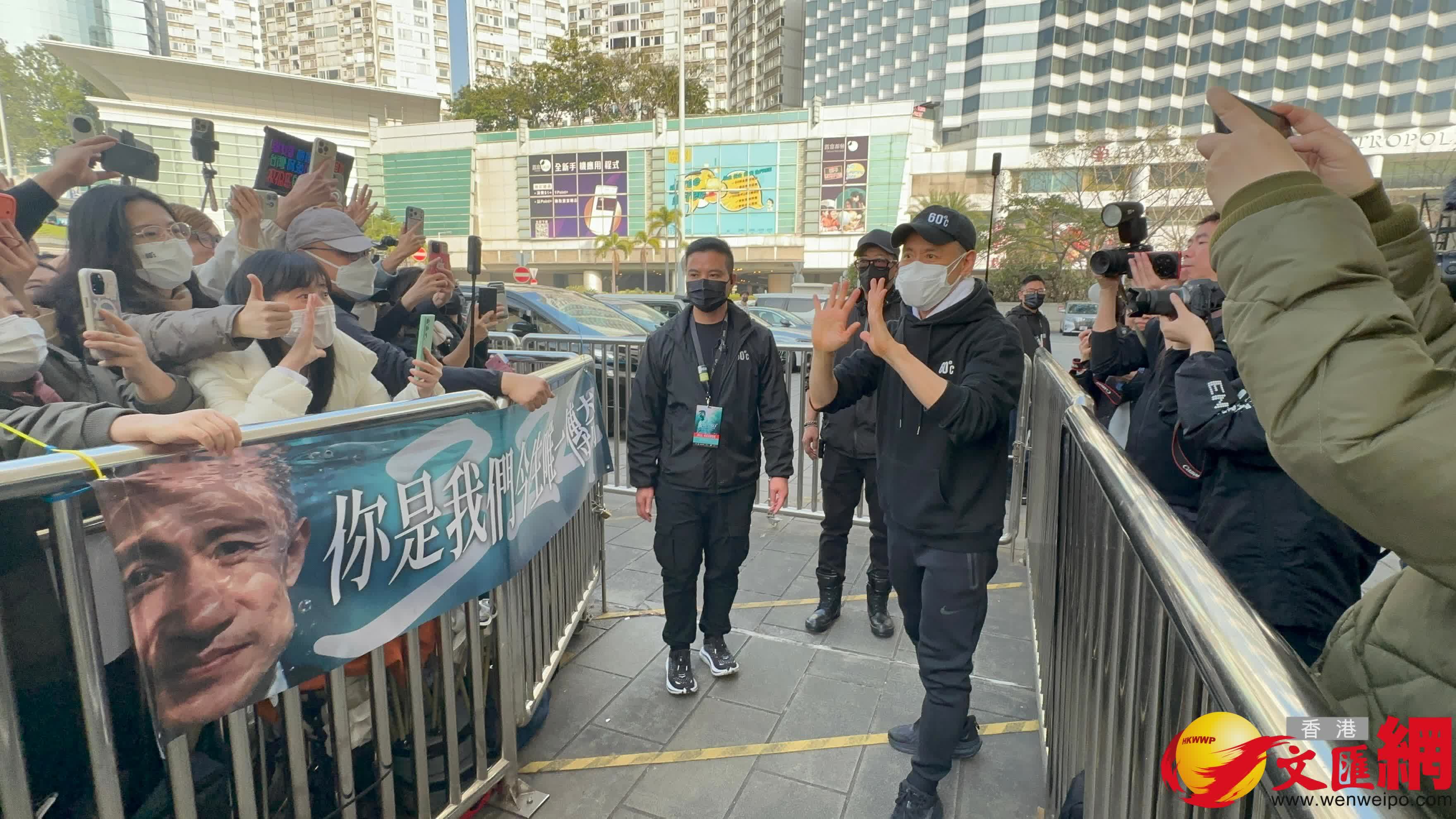 香港文匯報訊(記者 子棠)張學友今晚在紅館舉行《60+巡迴演唱會香港終章》的最後一場,亦是整個巡演的324場。今日下午3時25分,學友乘座駕抵達紅館後台門口時,隨即與現場過百人的團隊、進行拜神儀式,並與有份主辦的英皇老閭楊受成擁抱。如學友也做足安全措施,戴上兩個口罩,現場更有過千名粉絲圍觀,迫滿圍欄之餘,連馬路對面都聚集了大批人群,學友也做足安全措施,戴上兩個口罩好好保護自己。