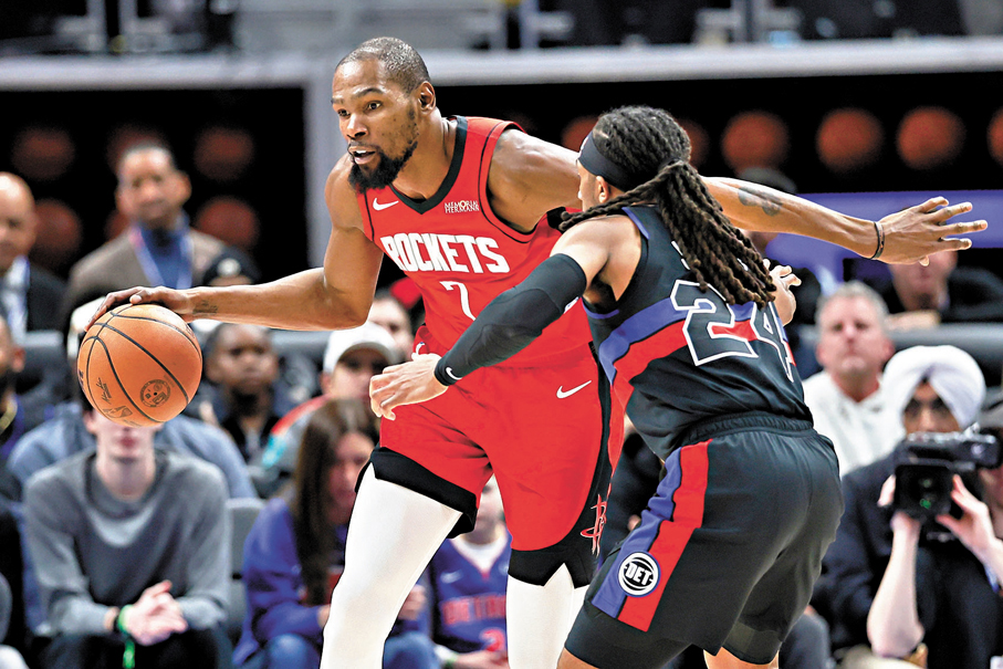 香港文匯報訊(記者 葉詩敏)NBA火箭憑藉主將杜蘭特轟入32分,周六作客以111:104擊敗東岸「一哥」活塞,近五場收獲四勝。杜蘭特今場射入五記三分球,升上歷史三分入球榜第11位,並有望在今季躋身前十。