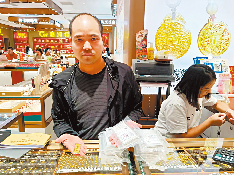 目前,內地正臨近農曆新年,迎來婚慶高峰。昨日,知名品牌如周大福、周生生的金飾價格分別為每克1,542元和1,545元,較水貝黃金交易中心高270多元一克。正是因為水貝黃金交易中心有很高的性價比,吸引了內地眾多消費者和投資者紛紛坐飛機、高鐵等前來購買他們喜愛的黃金飾品,或者投資金條、銀條。不過,一些內地消費者感嘆現在購買太貴了,一克要近1,300元,只能在重量上減少一些。原本購買手鐲、項鏈、戒指等,重量有的近百克,加上每克20多元的加工費,費用要13萬多人民幣,開支太大了,現在只能購買五六十克,在克重上減少,以降低婚慶支出。