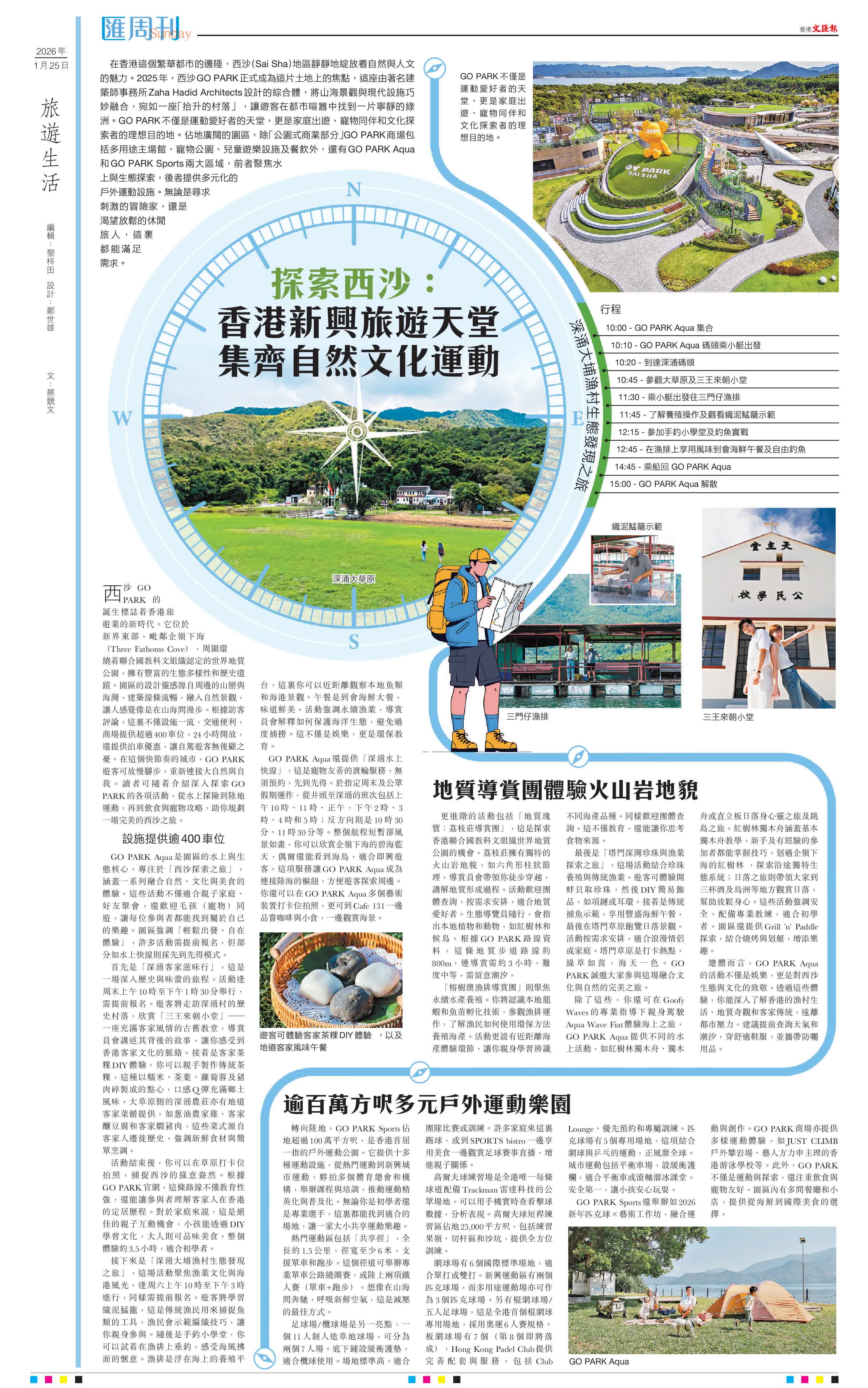 (文:蔡競文)在香港這個繁華都市的邊陲,西沙(Sai Sha)地區靜靜地綻放着自然與人文的魅力。2025年,西沙GO PARK正式成為這片土地上的焦點,這座由著名建築師事務所Zaha Hadid Architects設計的綜合體,將山海景觀與現代設施巧妙融合,宛如一座「抬升的村落」,讓遊客在都市喧囂中找到一片寧靜的綠洲。GO PARK不僅是運動愛好者的天堂,更是家庭出遊、寵物同伴和文化探索者的理想目的地。佔地廣闊的園區,除「公園式商業部分」GO PARK商場包括多用途主場館、寵物公園、兒童遊樂設施及餐飲外,還有GO PARK Aqua和GO PARK Sports兩大區域,前者聚焦水上與生態探索,後者提供多元化的戶外運動設施。無論是尋求刺激的冒險家,還是渴望放鬆的休閒旅人,這裏都能滿足需求。