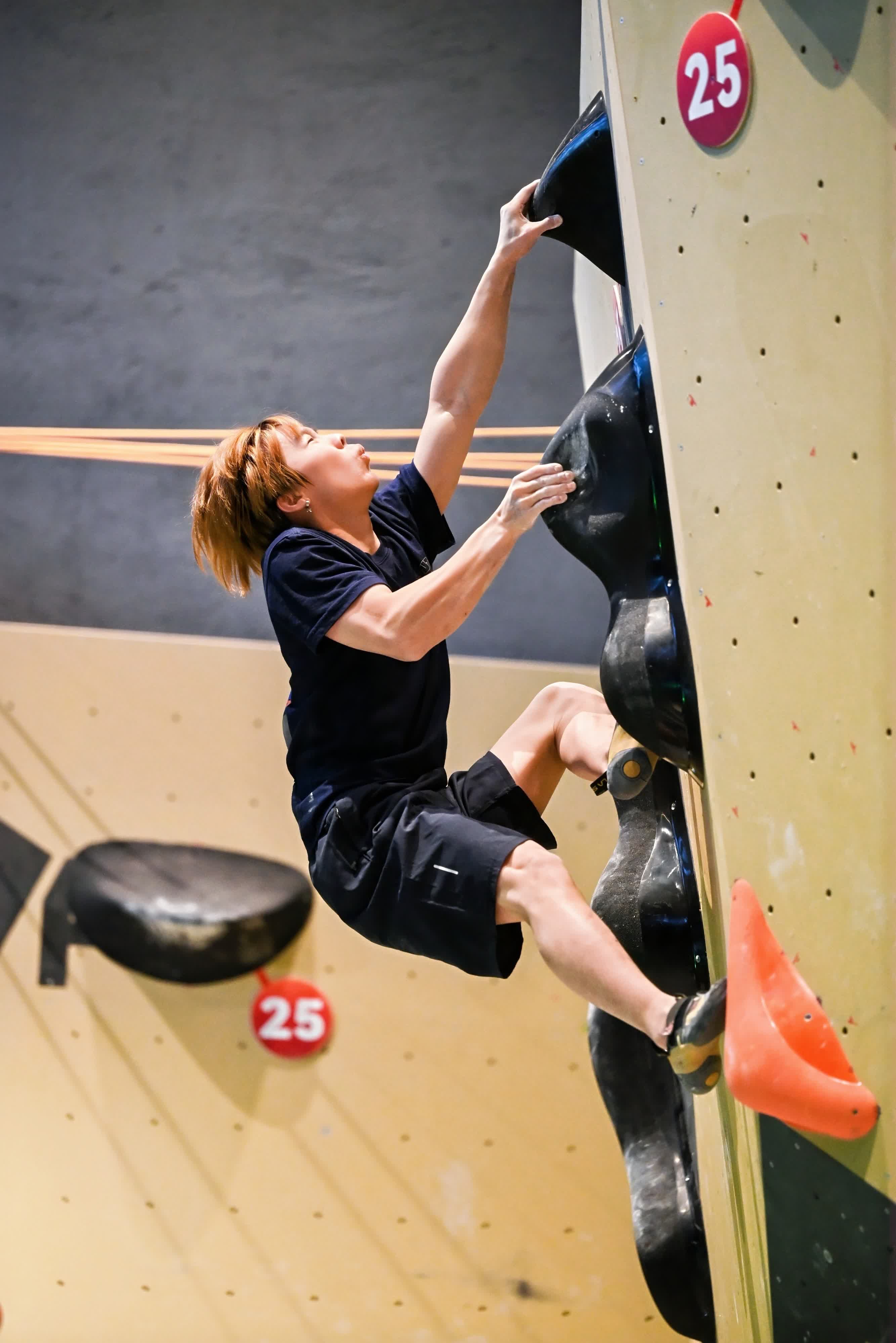 相比速度賽的極速對決,攀石賽更考驗選手的綜合實力,年滿12周歲的選手們在4.5米高的岩壁上,憑藉爆發力、平衡感與線路解讀能力挑戰自我。預賽採用開放式比拚,選手們在1.5小時內自主挑戰8條不同難度線路,不斷調整策略、完善動作,在一次次嘗試中攻克難點;決賽切換為隔離模式,4條高難度線路成為選手們的終極考驗,每條線路4分鐘的攀爬時間裏,選手們沉着觀察、果斷出手,在騰挪輾轉中展現「岩壁上的芭蕾」之美。男子A組的高難度對抗與女子組的靈巧突破各具看點,選手們在岩壁上的每一次堅持與突破,都彰顯出對攀岩運動的熱愛與執着,也讓現場觀眾感受到鹽田賽場的活力與激情。