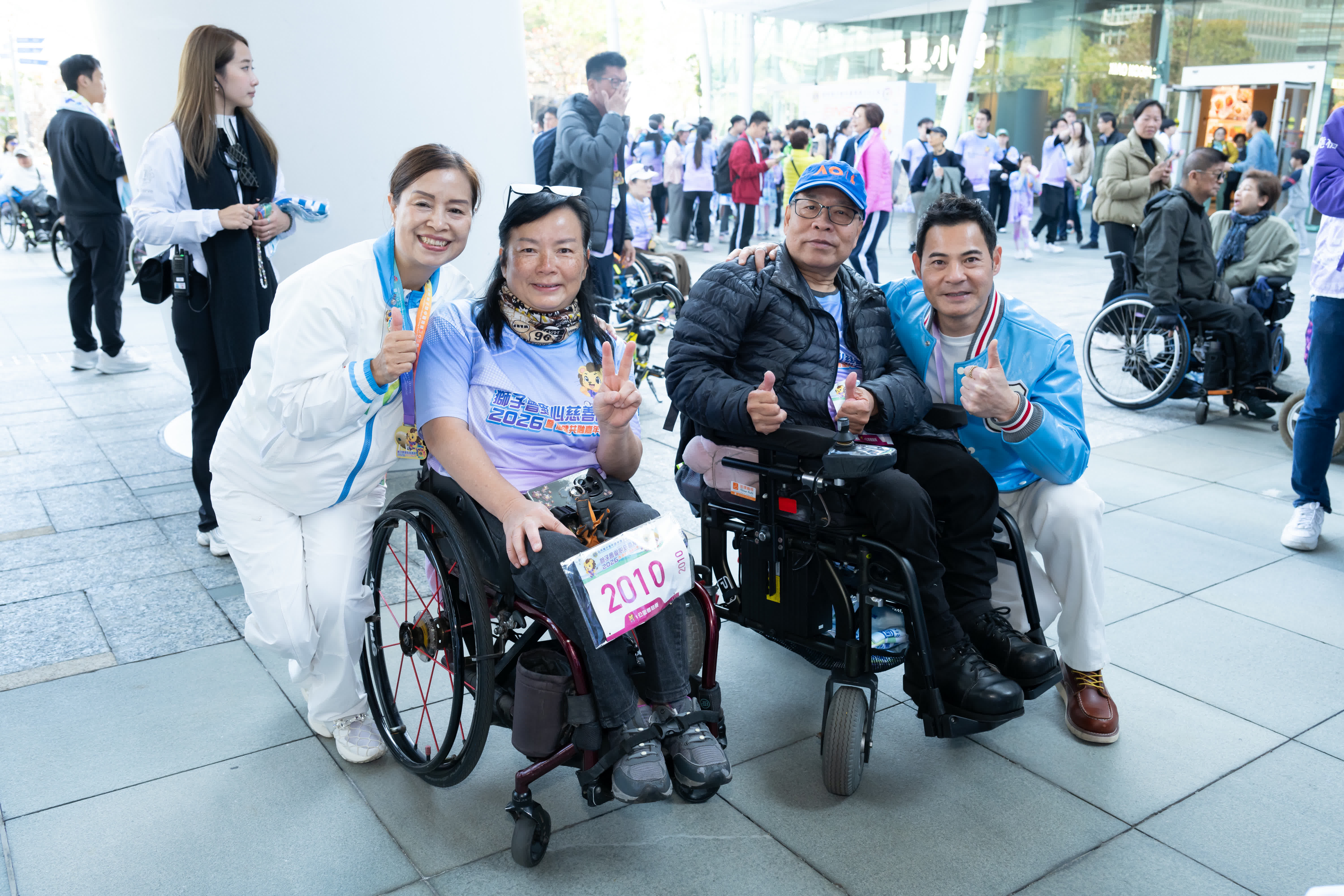 香港文匯報訊(記者 余雁)「獅子會愛心慈善跑2026暨傷健共融嘉年華」今天假大埔香港科學園長廊舉行,「愛心大使」之一的何雁詩更偕囝囝鄭讚廷(Asher)參與3公里賽事,抵達現場時大受市民歡迎,紛紛上前找何雁詩打卡。而身為「獅子會推廣大使」的黃智賢同樣大受歡迎,他也樂於成為大家拍照「景點」。