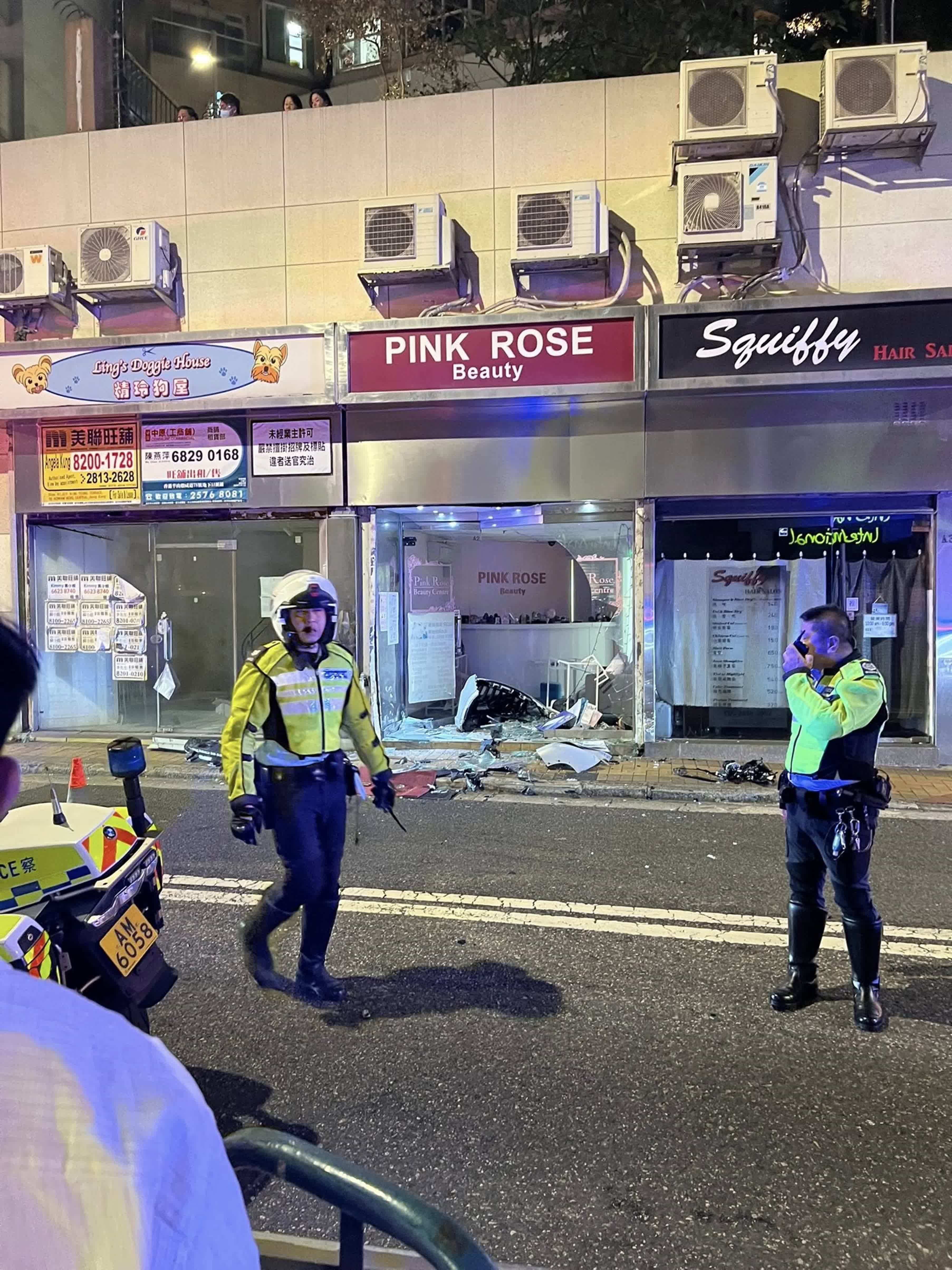 香港文匯報訊(記者 蕭景源)今日(25日)晚上約10時,一輛私家車沿西營盤般咸道駛至近寧養臺時懷疑失控,剷上行人路猛撞一間店舖及對開的行人路欄杆,期間涉事私家車漏出機油,被撞店舖嚴重毀爛,涉事男司機受傷但仍清醒,自行報案求助。警方到場後正封路調查意外原因。