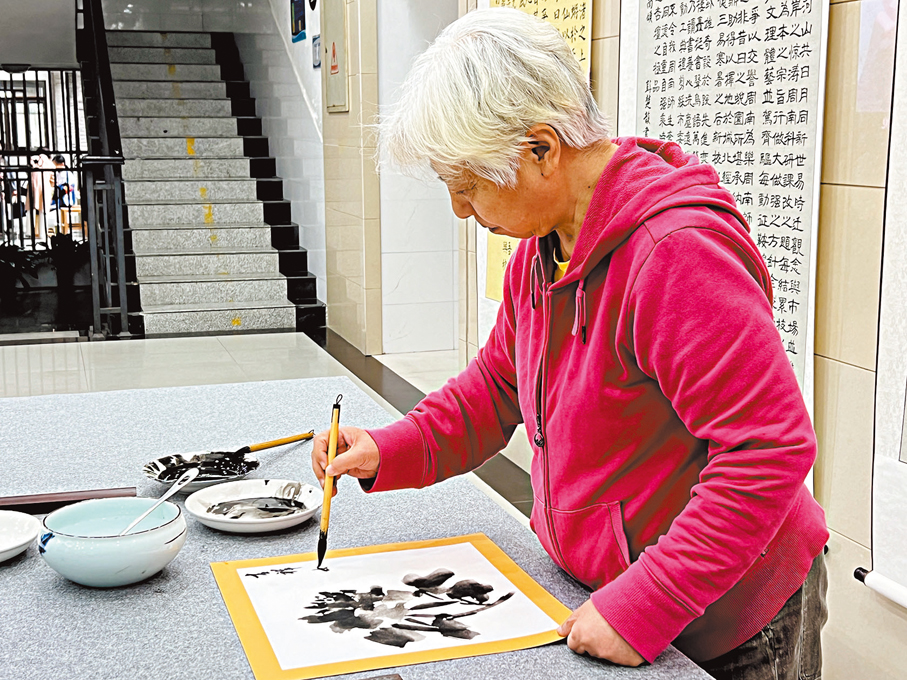 採訪中,馬漵陽展開一幅畫作,一朵木蘭自宣紙深處悄然綻放。畫面不見墨線勾勒,唯見水色交融,花瓣枝葉彷彿自有生命。