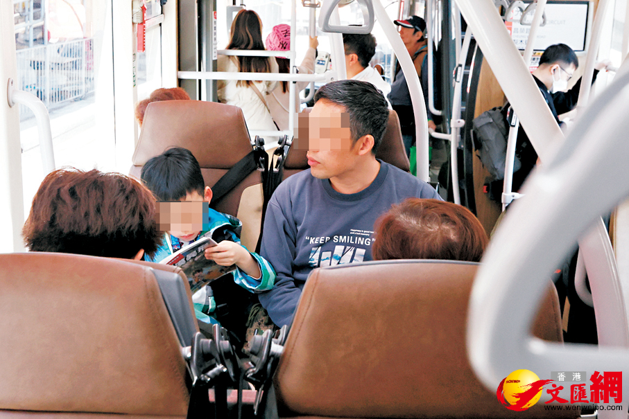 車上亦有小朋友自行扣好安全帶並大聲提醒他人佩戴,巴士亦透過廣播提醒乘客。不過,記者其後轉乘31B線往石籬大隴街總站,則發現部分座位乘客因車程短未有佩戴,不少人更寧願站立。
