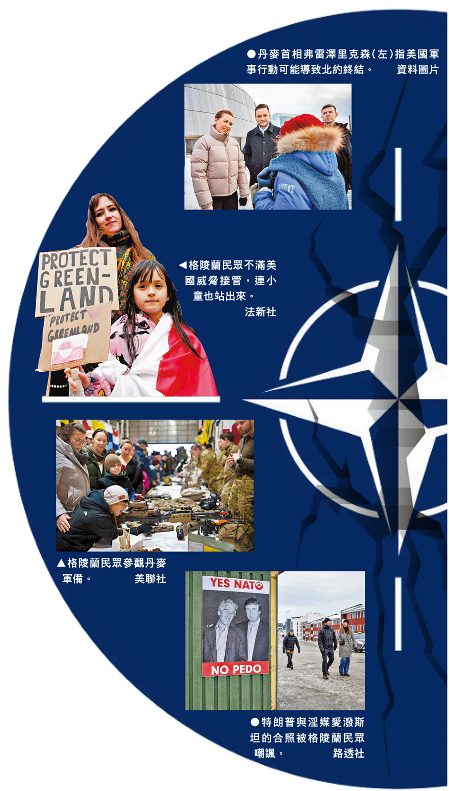 丹麥首相弗雷澤里克森表示,若美國貿然採取軍事行動,可能導致北約終結。丹麥國會國防委員會主席雅爾洛夫坦言,「每一項侮辱、威脅、關稅與謊言,只會更堅定我們的決心。我們絕不會交出格陵蘭。」他更稱,「我們祈求真正的盟友與我們站在一起,因我們需要支持。」目前所有跡象均顯示,曾遭特朗普威脅加徵關稅的多個歐洲國家,均準備挺身捍衛丹麥。甚至與特朗普關係密切的其他歐洲國家領袖,例如意大利總理梅洛尼,亦批評特朗普的決定錯誤。