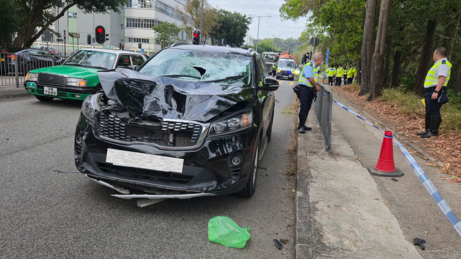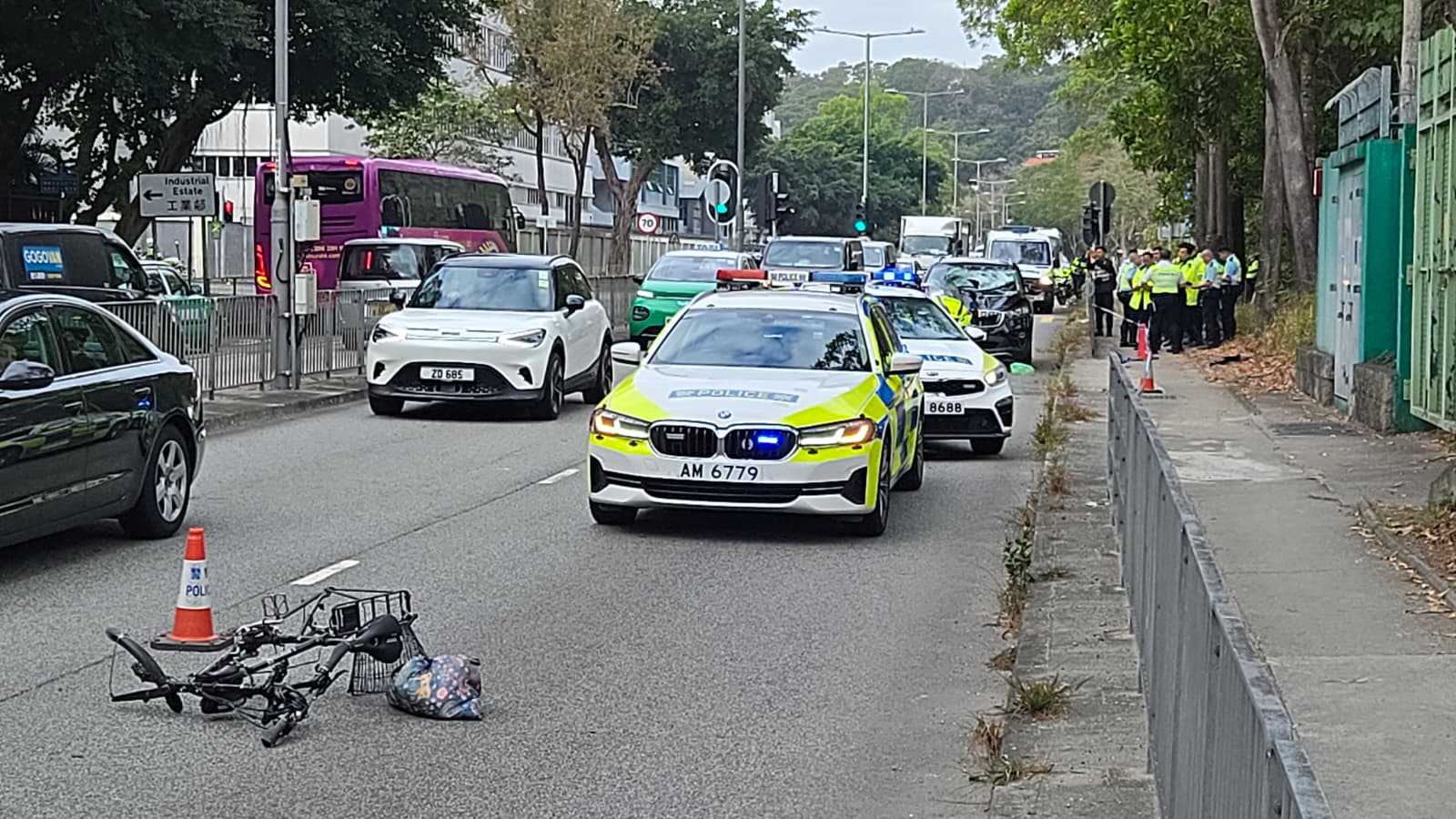 現場所見,私家車車頭損毁、擋風玻璃破裂出一個大洞,被撞單車前後輪胎飛脫嚴重損毁,地面遺下大灘血跡。受車禍封路影響,現場交通一度受阻擠塞,直至解封始逐步恢復正常。