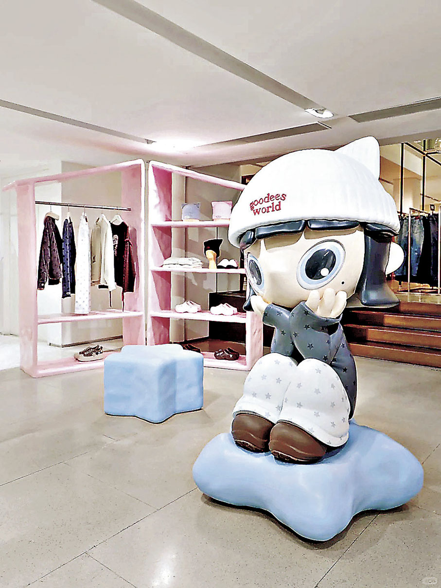 另一空間「Room 2 Goommy衣帽間」位於連卡佛海港城店內,演繹截然不同的夢幻世界。白色空間內以粉藍色傢具布置,結合星星元素打造出甜美少女風,品牌公仔Goommy以放鬆的姿態趴坐在房間各處,彷彿正期待着新朋友的到來。品牌還與連卡佛合作推出獨家限定服飾與鞋履,必買單品包括在內地賣到斷貨的貓耳帽,毛線質感的帽子上點綴一雙可愛貓耳,有灰、粉、黑三款顏色可選,無論行可愛或者型格風格都適合。