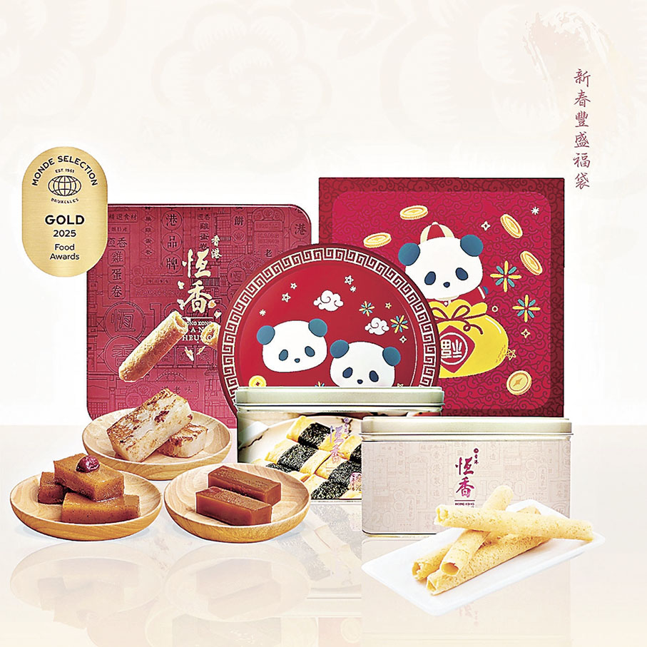 恆香除了延續傳統手藝為市民帶來最地道的節慶滋味外,今年更新增多款口味,達至「立新不破舊」。當中造型可愛的「新年熊貓系列」賀年禮盒包括糖果全盒、什錦曲奇、鳳梨酥及貴妃糖禮盒。此外,亦有恆香經典禮盒、藝術氣息滿滿的香港文化博物館及香港藝術館系列等等;雞蛋卷系列主打無添加防腐劑及人工色素,亦是全港碩果僅存的人工手轆雙層手造雞蛋卷,更有多款新品包括:蛋香濃郁的日本新紀元·曉雞蛋卷、茶香清雅的宇治抹茶雞蛋卷及南洋芳香的斑蘭雞蛋卷、經典必搶紫菜肉鬆鳳凰卷等等,為味蕾帶來豐富而獨特的享受!
