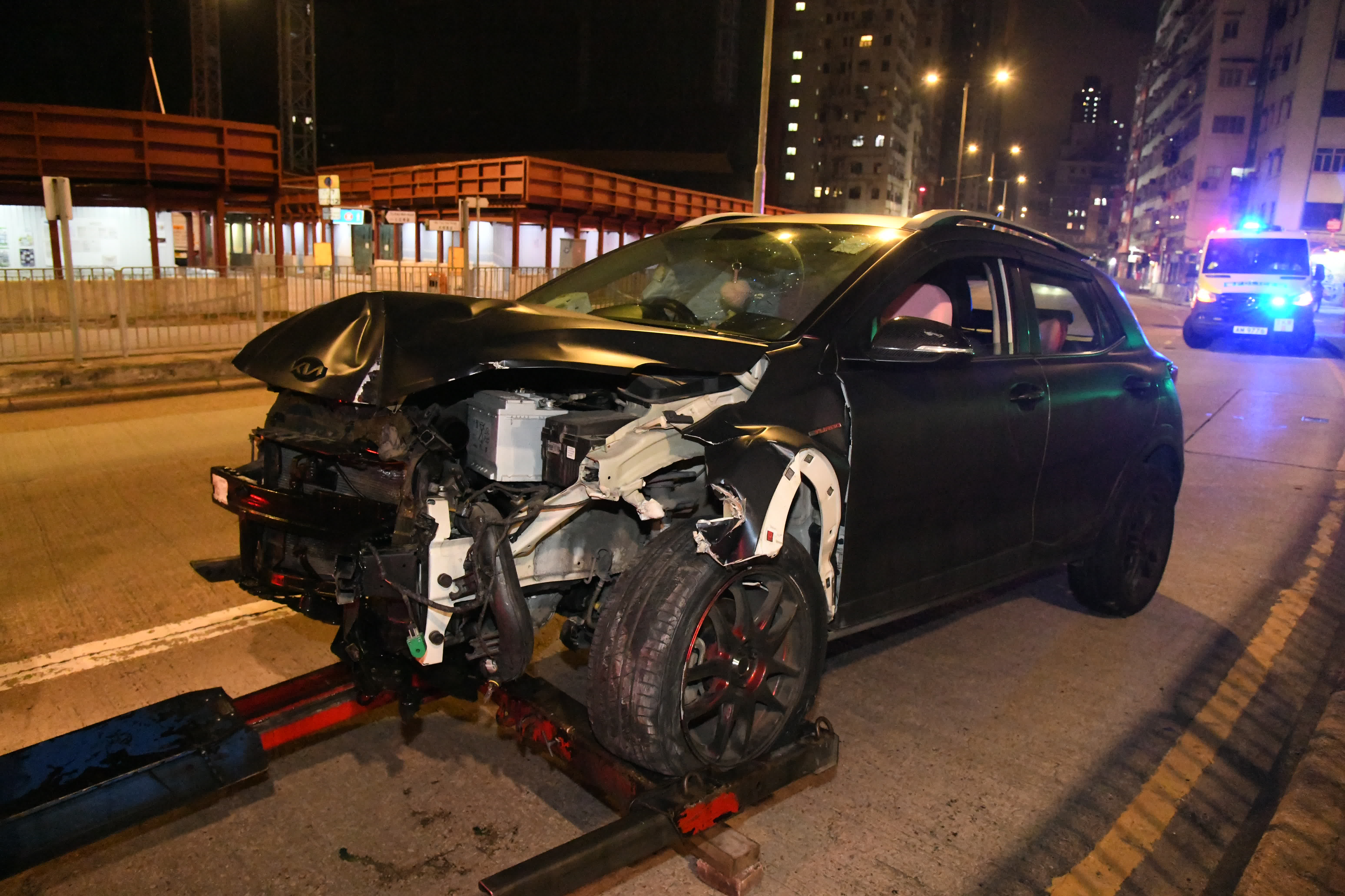 香港文匯報訊(記者 蕭景源)昨晚(26日)晚上11時許,一輛私家車沿土瓜灣馬頭圍道往九龍城駛至近土瓜灣道右彎位時,懷疑失控直衝撞毁鐵欄剷上行人路,再撞向近漆咸道北路邊鐵欄及指示牌始告停下,幸當時未有途人經過,否則不堪設想。車禍中,肇事私家車車頭嚴重損毁,36歲姓杜男司機滿身酒氣被困車廂,附近途人見狀報警。
