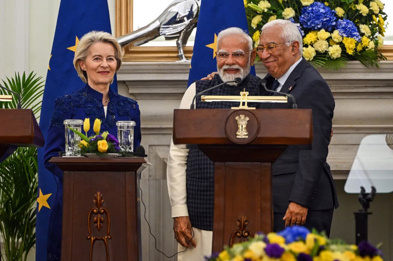 印度與歐盟領導人周二(1月27日)在印度新德里會晤,敲定經過20年談判終於達成的貿易協議。彭博通訊社報道,是次協議規模是近年來最大,內容涵蓋降低印度與歐盟之間多數消費品和工業品貿易關稅,同時開放市場,減少貿易壁壘,強化在潔淨能源、製藥及半導體等關鍵領域的供應鏈合作,減少雙方對美國的貿易依賴。