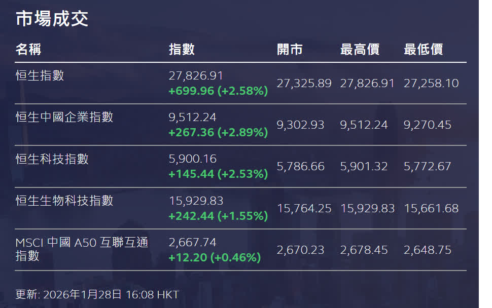 雖然市場普遍預期美聯儲1月議息不會減息,但美元指數連日低迷,由月中約99水平一路下探。截至今午約4時40分,報96.07,利好港股氣氛。1月議息結果將於周四凌晨出爐,投資者聚焦屆時或公布美聯儲新任主席人選。
