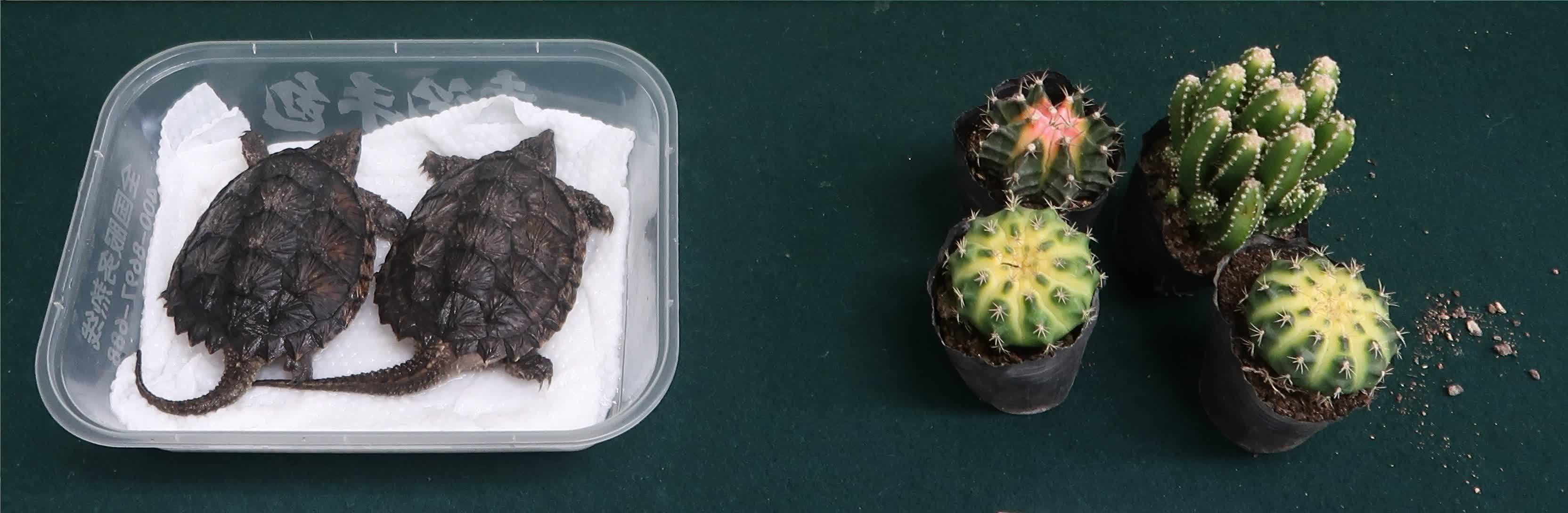 海關人員昨日在上述管制站入境大堂截查一名62歲抵港男旅客,並在其所攜帶的膠袋內發現該批活龜和仙人掌,懷疑均為受管制屬瀕危物種,遂拘捕該名男子。漁農自然護理署(漁護署)人員到場查驗後,確認該批物種屬《瀕危野生動植物種國際貿易公約》所列明的瀕危物種,在本港受《保護瀕危動植物物種條例》(《條例》)所管制。案件已轉交漁護署跟進。