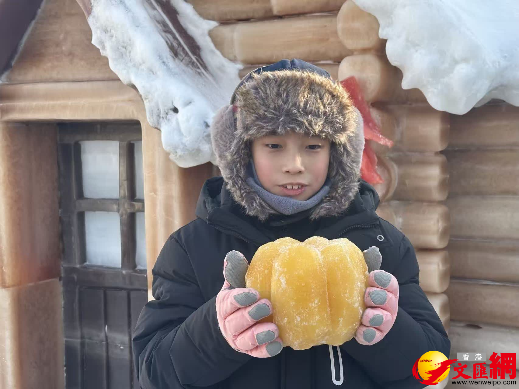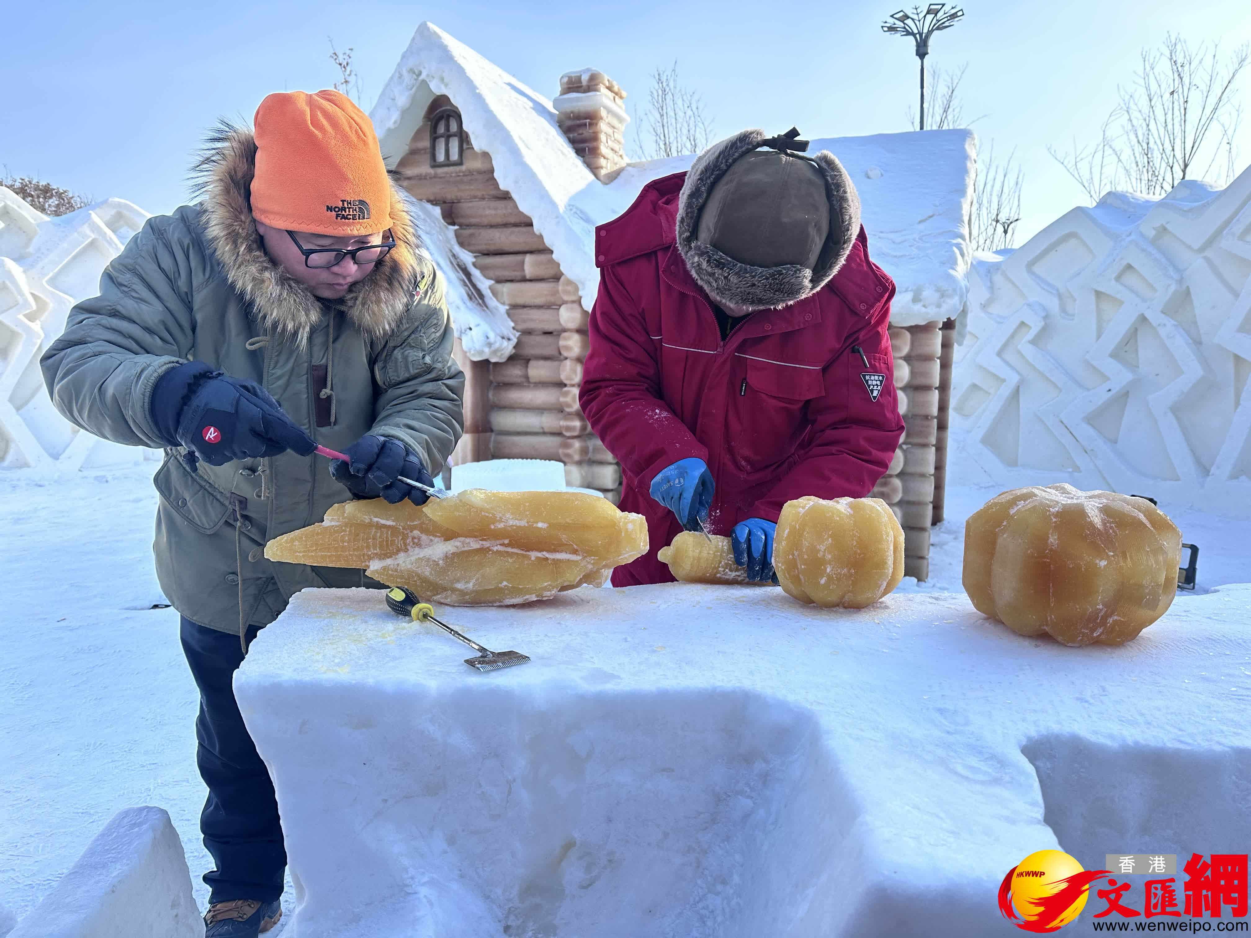 (香港文匯網記者王欣欣、于海江 哈爾濱報道)1月28日,第二十七屆哈爾濱冰雪大世界再添新景觀,一處由全新研發的植物彩色冰打造的村落景觀吸引眾多遊客圍觀拍照。栩栩如生的玉米、南瓜和辣椒點綴周圍,生動且有趣,廣州來的小朋友興奮地說:「這黃澄澄的玉米雕得跟真的一樣,好想要咬一口呢!」