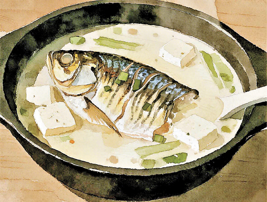 許多年後,在無數個並非濕冷、卻總覺得心裏缺了一塊熱乎氣的日子裏,我會自己動手做一碗魚頭豆腐湯。煎魚,沖水,看着湯色轉白。可我知道,我復刻的,終究只是那奶白的湯色,而非那被記憶文火慢燉了半生、連悲傷與離別都熬成了醇厚的人間暖意。那口鐵鍋,那陣腳步聲,那種為了一碗湯而虔誠準備一個下午的慢時光,早已沉入記憶的河底,化作湯裏最不可言說的一味底料。