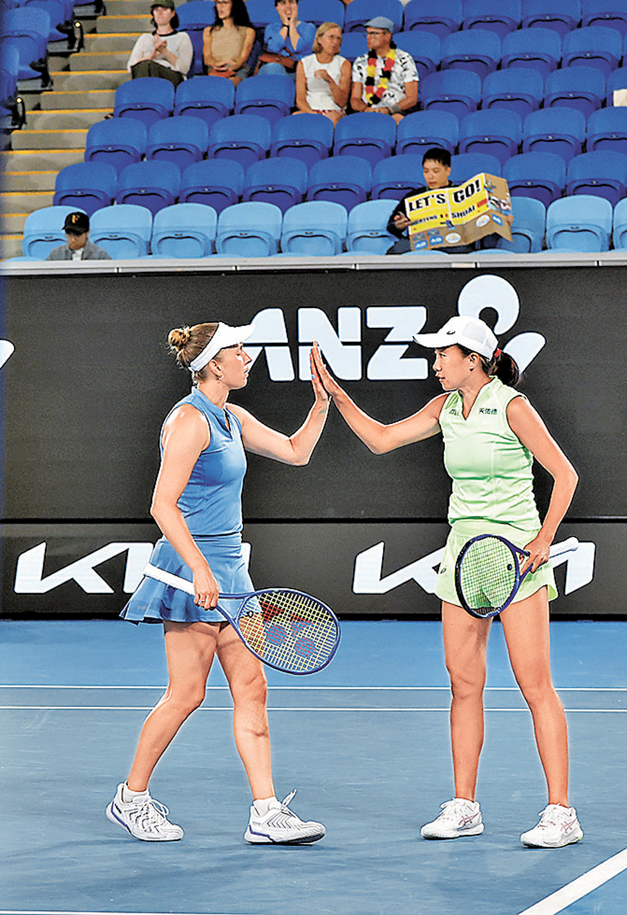 香港文匯報訊(記者 郭正謙)「中國金花」張帥於澳網女雙殺入決賽!37歲的張帥與比利時拍檔梅爾滕斯於今屆澳洲網球公開賽女子雙打氣勢如虹,四強以6:3及6:2橫掃柴原瑛菜/茲沃娜列娃組合,繼續向生涯第三座大滿貫女雙冠軍進發。