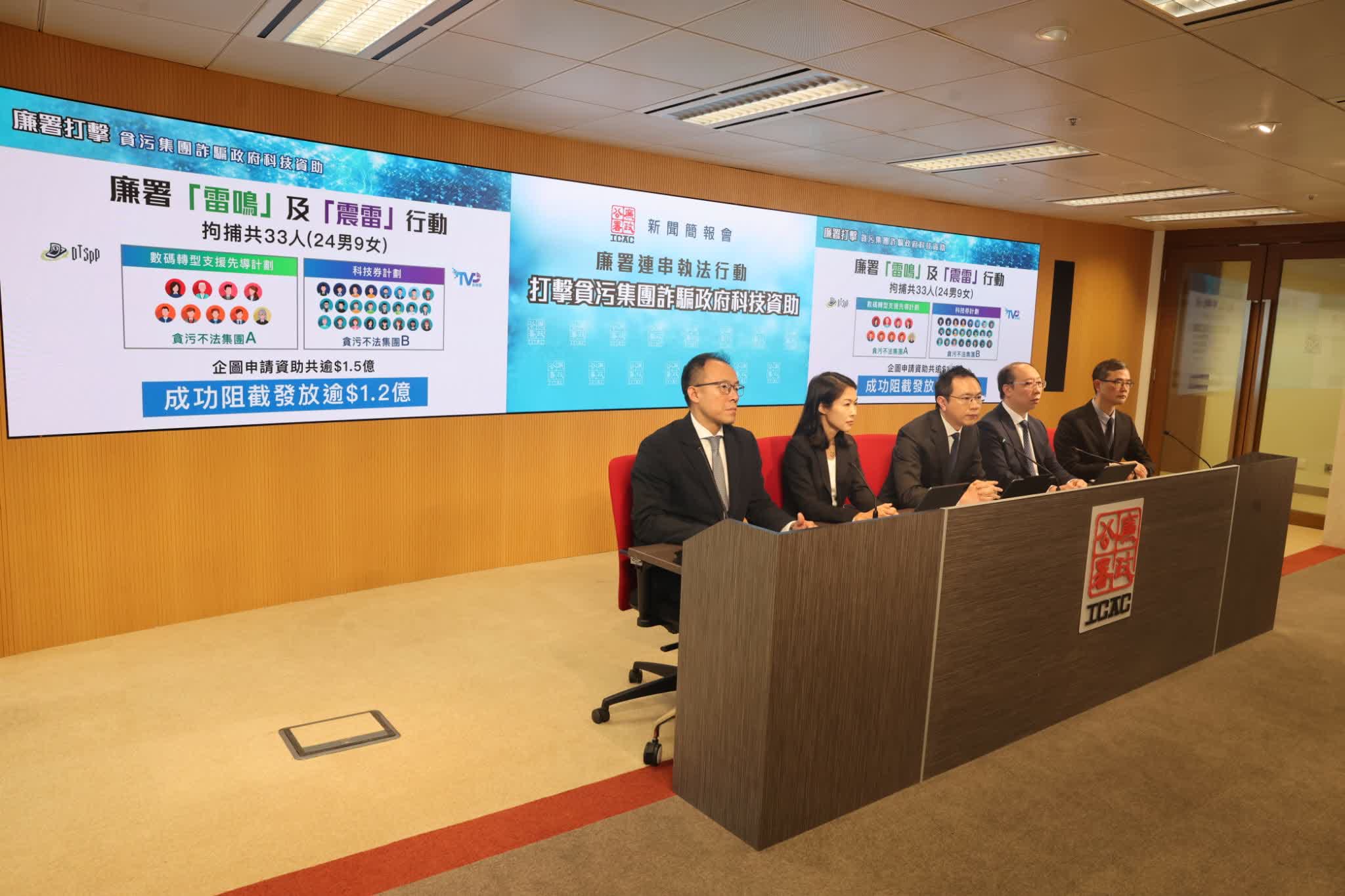 香港文匯報訊(記者 蕭景源)廉政公署早前接獲貪污投訴並展開調查,發現有不法分子以貪污手段申請「數碼轉型支援先導計劃」和「科技券」計劃的資助,詐騙公帑、謀取私利。廉署經深入調查後,本月中先後採取代號「雷鳴」及「震雷」大型執法行動,偵破兩個貪污集團共拘捕33人,涉合共提交約1,500宗申請,企圖詐騙兩個計劃共逾1.5億元資助額,廉署及相關機構成功堵截發放1.2億元資助。廉署強調,不會讓不法之徒「攞到一分錢」,將聯同機構追回資助。