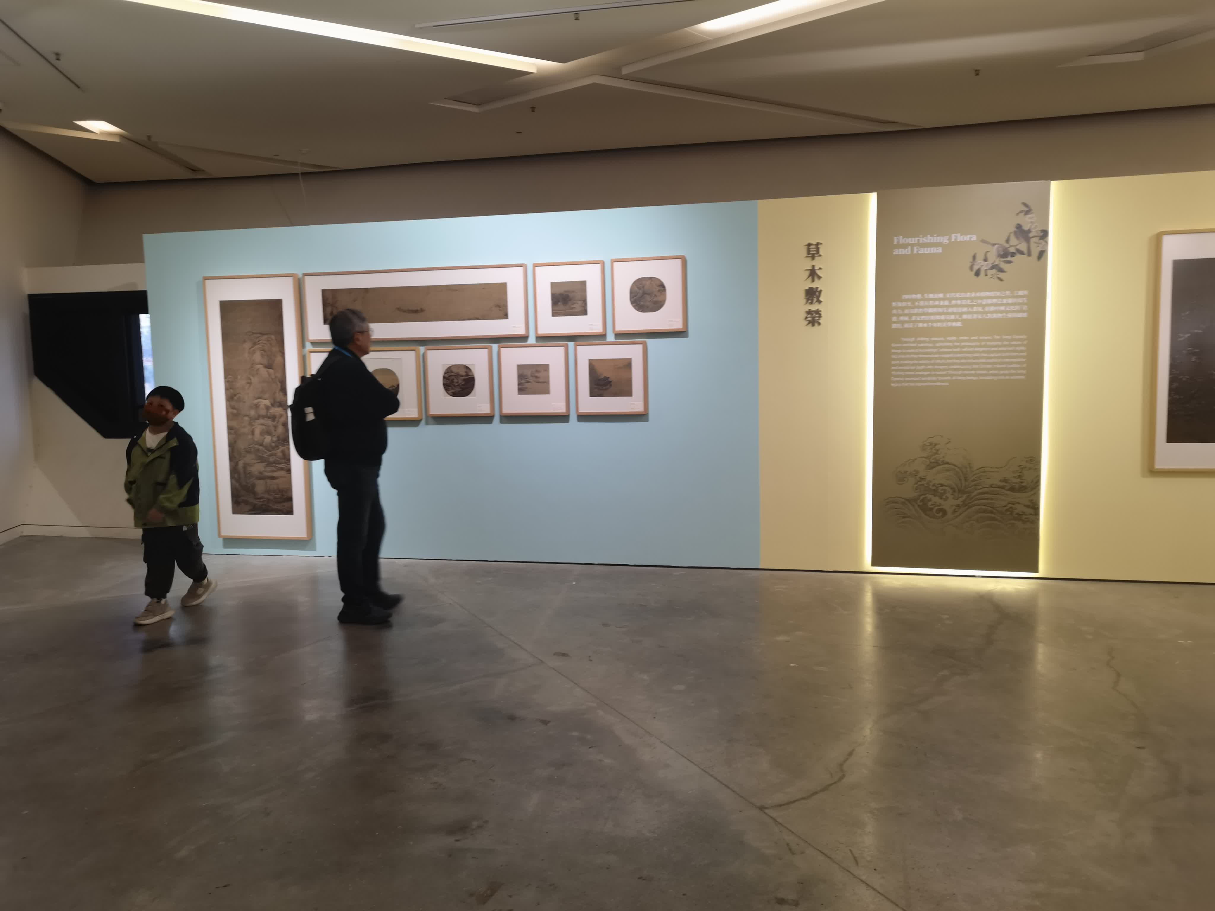 展覽現場設有三大主題區域:「山川錦繡」以宋代山水畫抒發家國山河之情,拼湊出一脈相承的山水與文脈;「草木敷榮」通過花鳥畫映照四時更迭,讓觀眾在四季、繁花與鳥鳴間感受自然生機;「繽紛世相」則以人物畫,體現芸芸眾生的百態人生,讓市井的煙火人情與風雅相映成趣。各區域分別以青瓷、宋代花藝、傳統工藝與日常器物作為烘托,於宋韻雅緻中喚起生活與文化的共鳴。