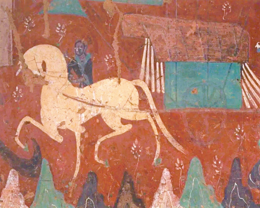 到北周時期,第428窟東壁南側,一幅佛陀轉世故事裏的馬畫尤其生動。