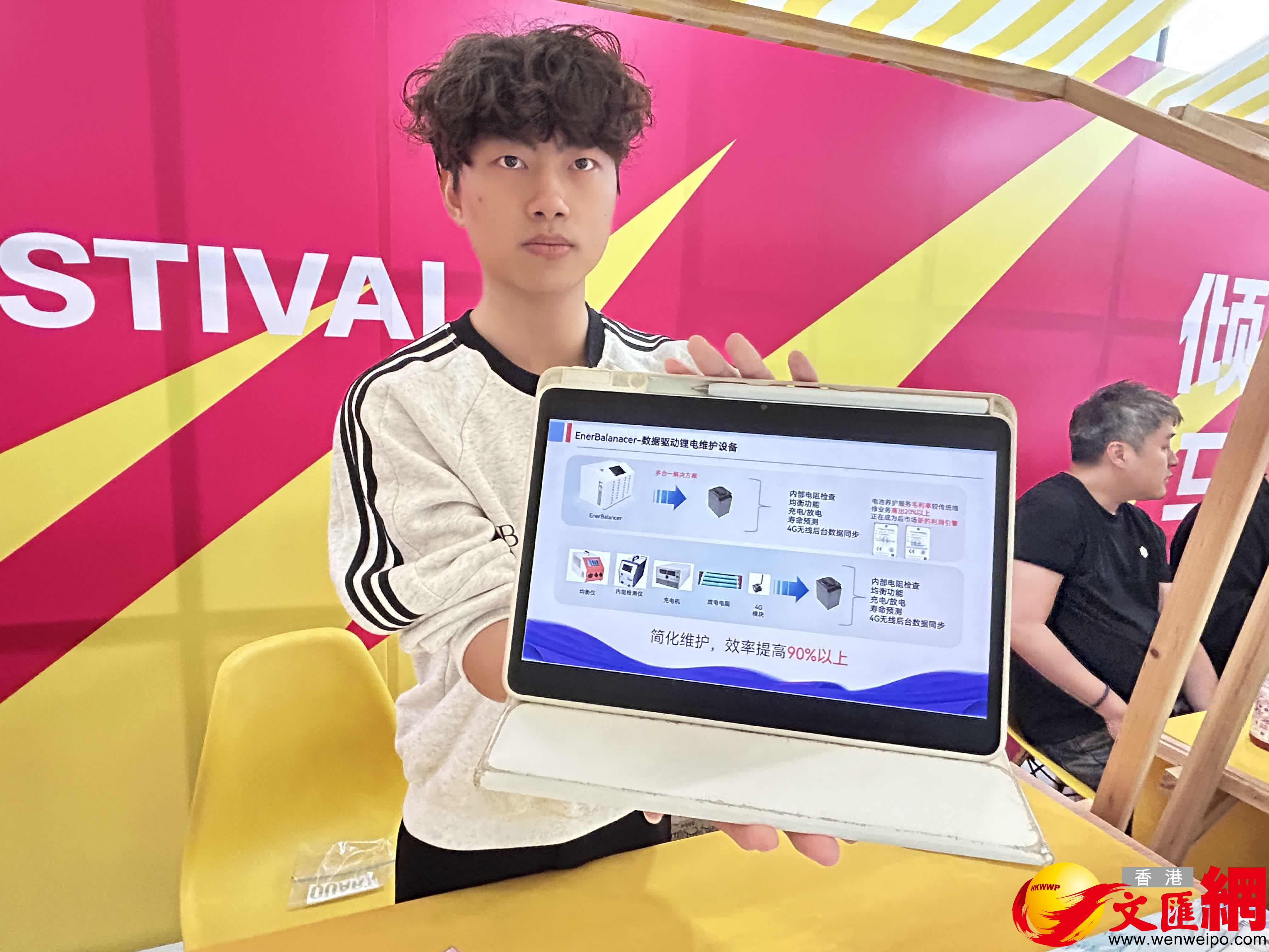 深圳源極動力科技有限公司專注於鋰電池全生命周期安全管理,構建了從前端設計到後端運維的完整維護生態,目前,公司已落戶香港科學園。源極動力展區負責人官翊楠介紹,多數情況下,新能源汽車、無人機、儲能設備等銷售出去後,廠商多不負責電池檢測、維護工作,用戶多依賴於第三方專業服務機構,常常會因疏於檢查而導致電池發生故障,甚至引發起火爆炸,帶來極大的安全隱患。