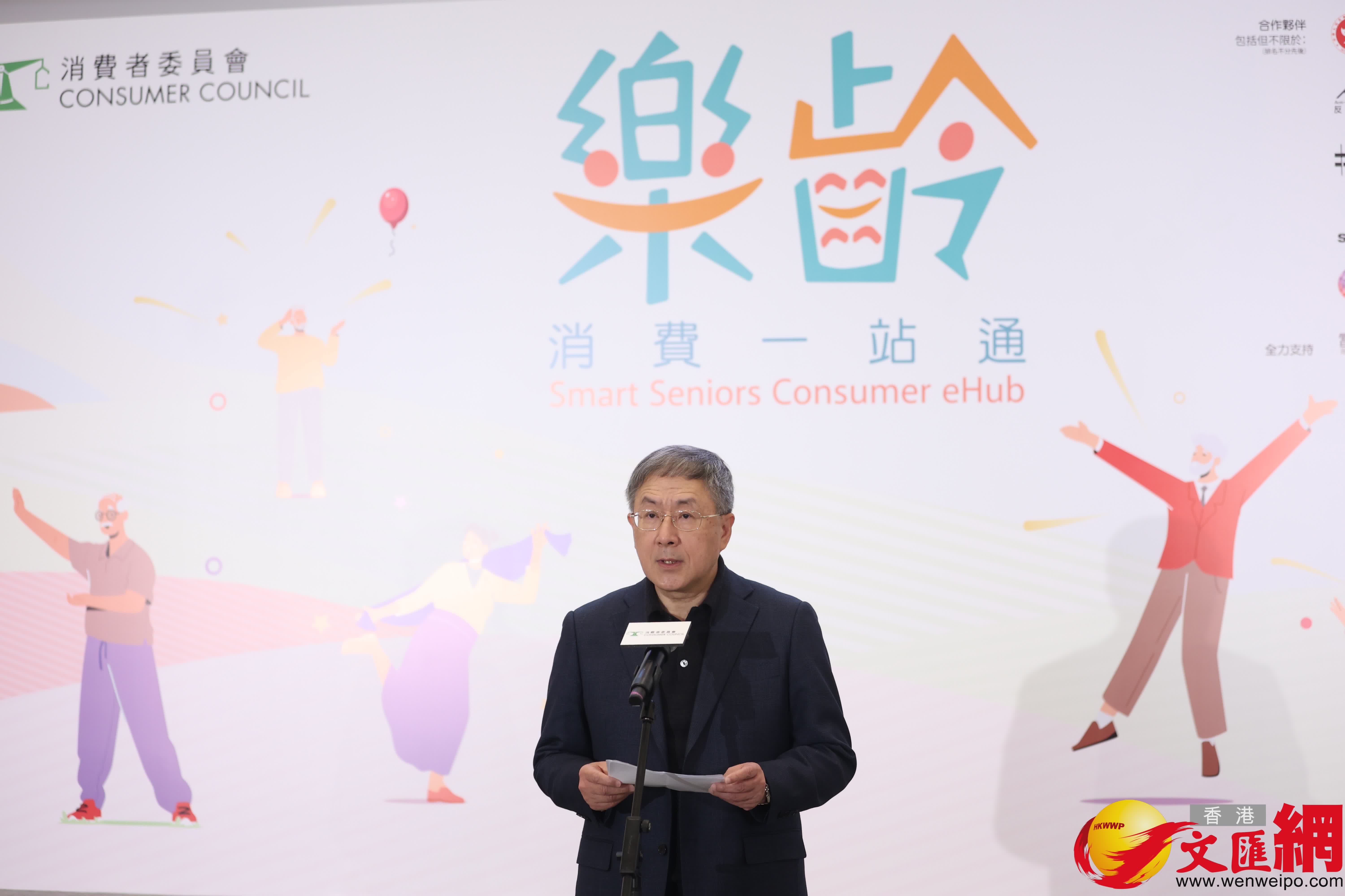 消委會主席陳錦榮先生致歡迎辭時指出:「面對人口結構轉變,樂齡人士在消費市場扮演愈來愈關鍵的角色。消委會希望透過『樂齡消費一站通」讓長者、其家人及照顧者能輕鬆獲取可信的消費資訊,提升他們的自我保護能力。我們將全力配合特區政府推動銀髮經濟的方向,加強與各政府部門單位、公營、社福及醫療機構合作,促進優質銀色產品與服務的發展,期望這個全新一站式平台,能實現『樂齡消費 增添智慧」。」