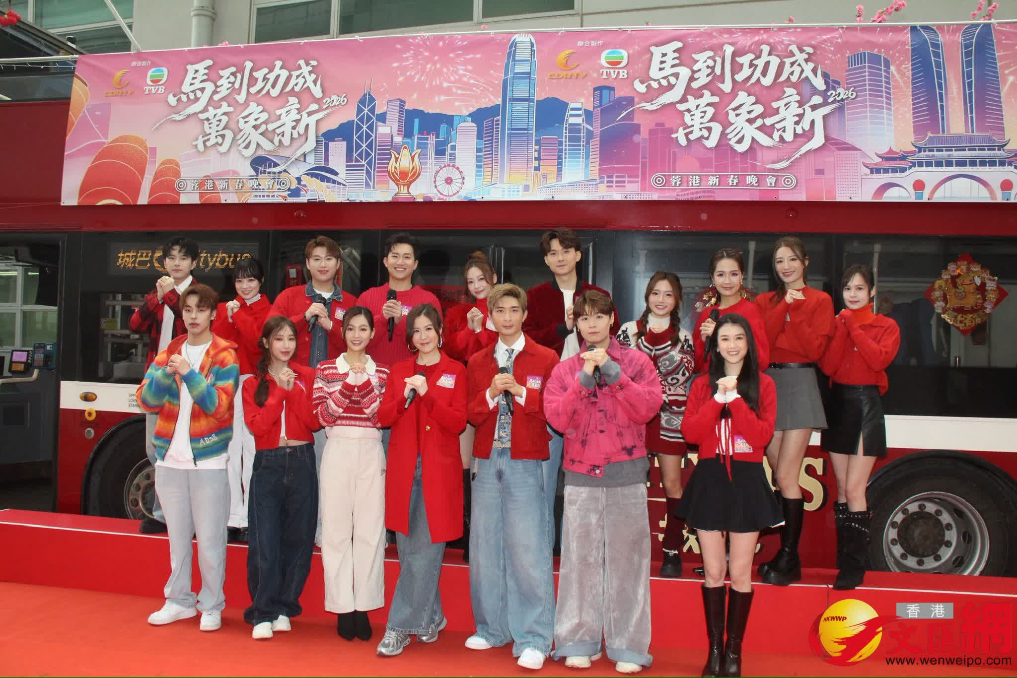 香港文匯報訊(記者 達里)劉佩玥、郭柏妍、詹天文、張馳豪和冼靖峰等人今日坐花車拍攝由TVB與成都市廣播電視台聯製的春晚節目《馬到功成萬象新2026蓉港新春晚會》,冼靖峰與張馳豪日前已到成都拍攝部分環節,二人最難忘當地的勁辣食物,不能吃辣的冼靖峰吃過麻辣火鍋後致滿臉通紅及嘴唇變「孖潤腸」,要急喝冰水補救。