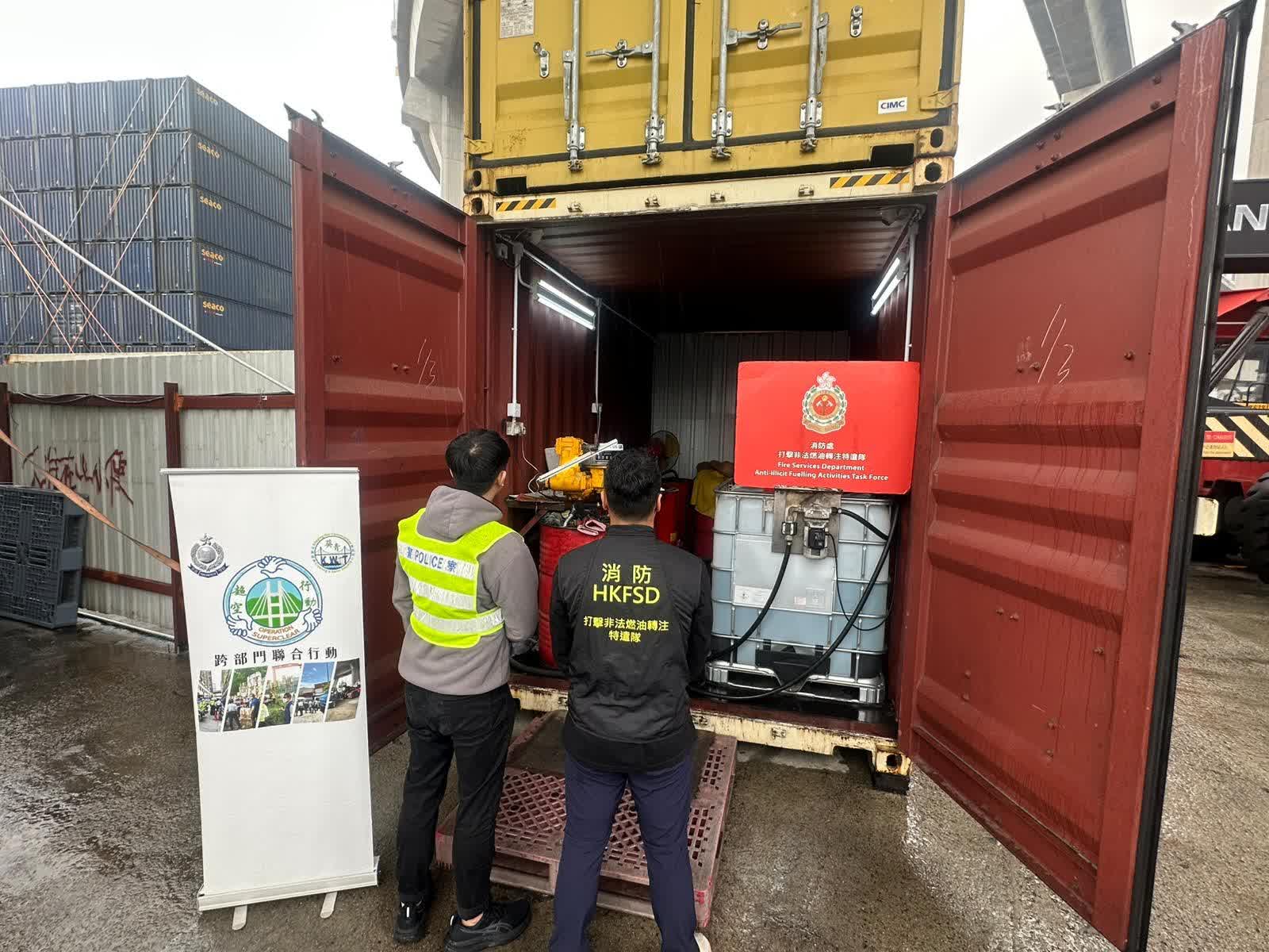香港文匯報訊(記者 蕭景源)葵青警區聯同消防處今日(31日)於青衣區一帶進行打擊非法加油活動的針對性行動,於航運路成功搗破一個非法加油站,共檢獲約2.1萬公升懷疑柴油,市值約59萬元。