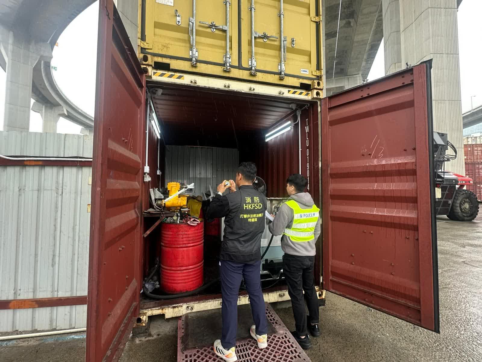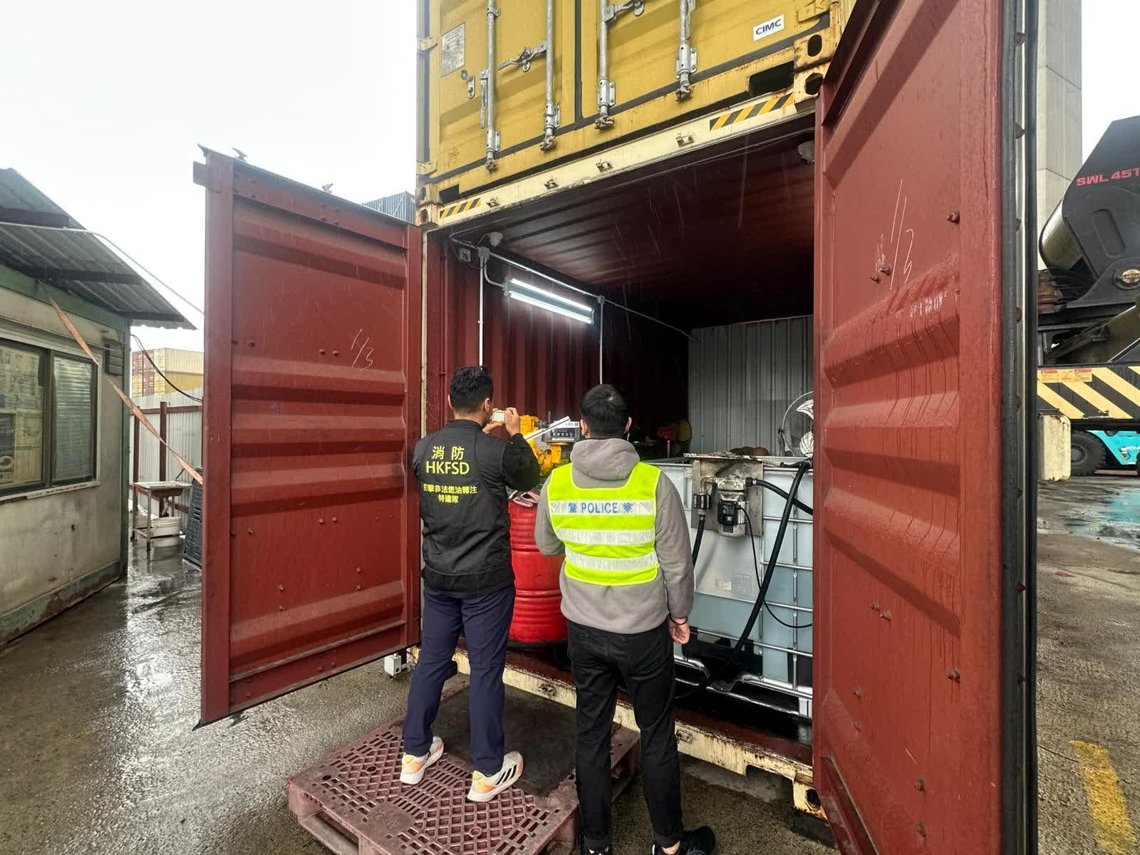 行動中,人員發現大批入油工具並截查懷疑與案件有關的一名男子,他涉嫌違反《消防(消除火警危險)規例》、《危險品條例》及《危險品(管制)規例》,將會被檢控。同時,消防處已將涉案的柴油檢走,並會向法庭申請充公。