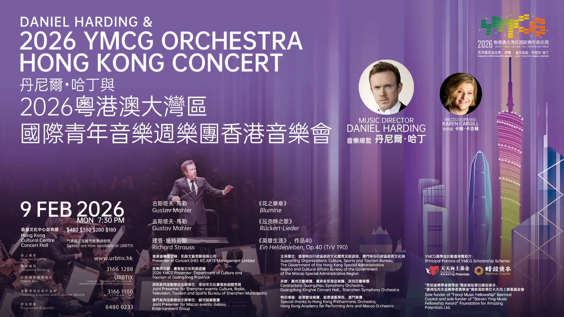 是次音樂會陣容鼎盛,曲目編排亦極具心思。指揮丹尼爾·哈丁將聯同當今炙手可熱的女中音歌唱家卡倫·卡吉爾(Karen Cargill),帶領樂團演繹古斯塔夫·馬勒(Gustav Mahler)及理查·施特勞斯(Richard Strauss)的經典名作。