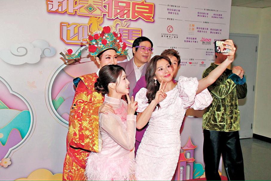 香港文匯報訊(記者 達里)草蜢、陳松伶、《中年好聲音》歌手周吉佩及張與辰、關嘉敏、龔嘉欣、麥美恩等人前晚參與新春節目《新春保良迎金馬》錄影,久未有參與大型節目的麥美恩,夥拍龔嘉欣、安德尊、周奕瑋和李尹嫣擔任節目司儀。早前有傳麥美恩被飛出台慶頒獎禮司儀行列,她解釋當時因身在外地「追星」,而龔嘉欣就解釋頒獎禮司儀由上一屆得獎者擔任,所以她才有機會嘗試做主持。