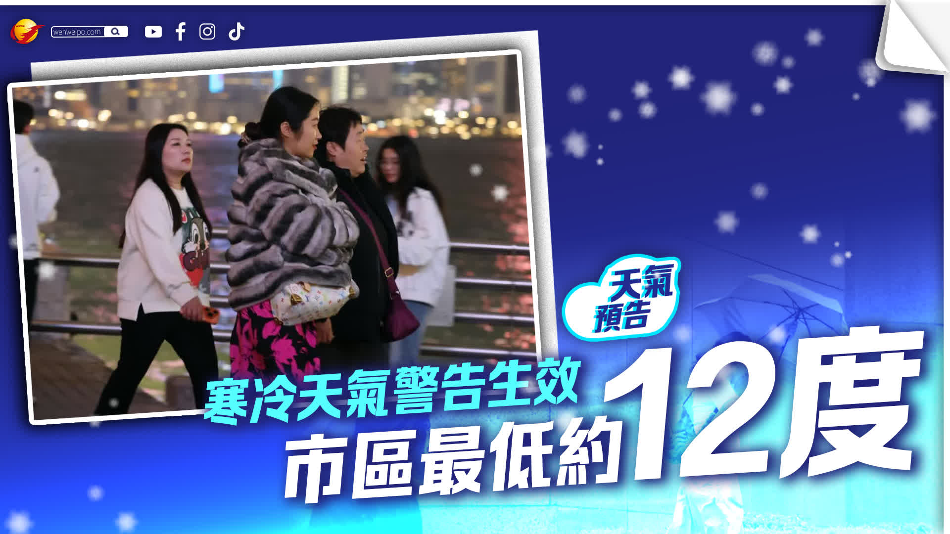 寒冷天氣警告生效,天文台預測本港今早天氣寒冷,市區最低氣溫約在12度左右,新界會再低一兩度,展望隨後兩三日早上仍然清涼,但隨着季候風被一股偏東氣流取代,本周中後期氣溫逐步回升。