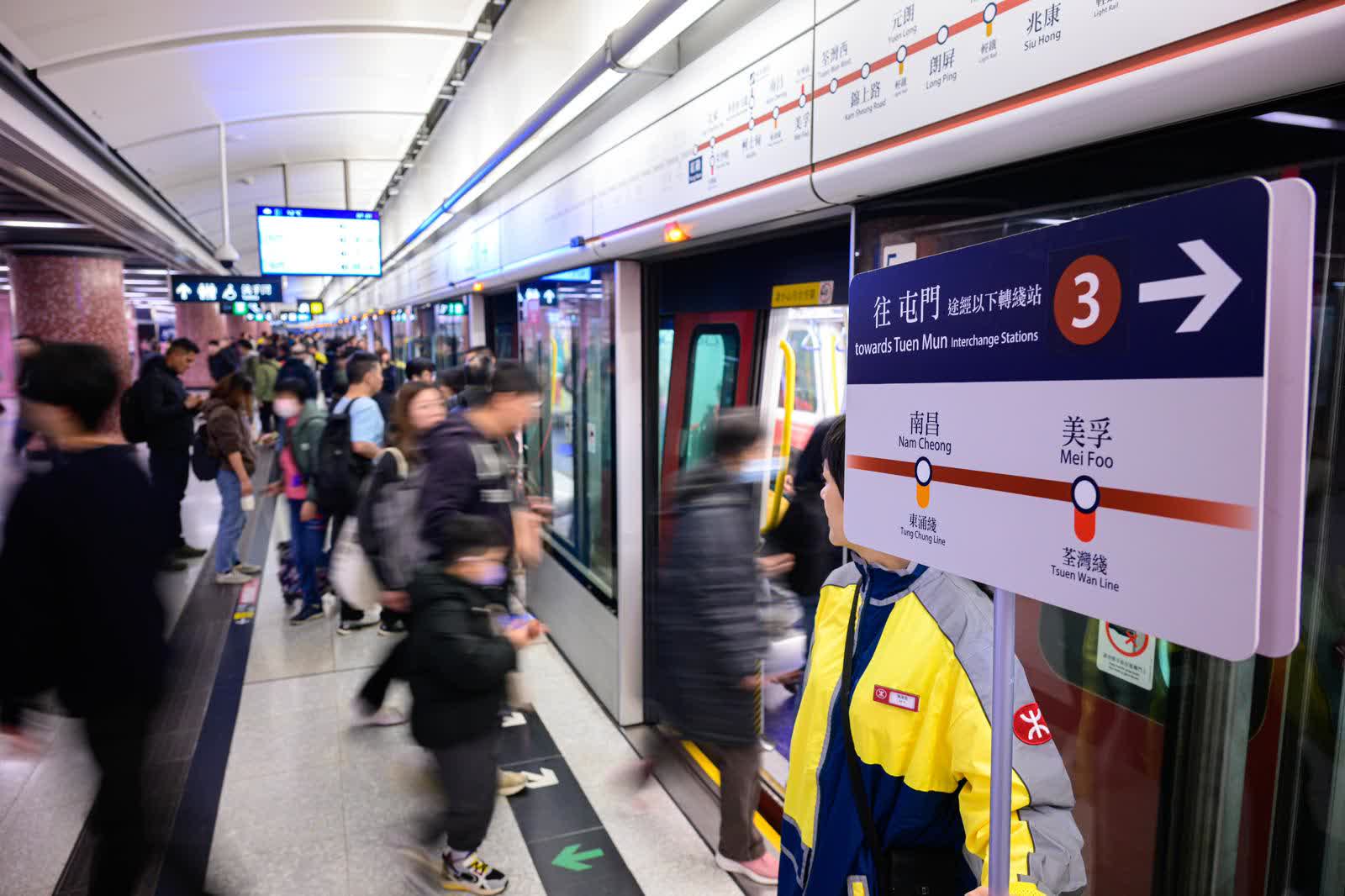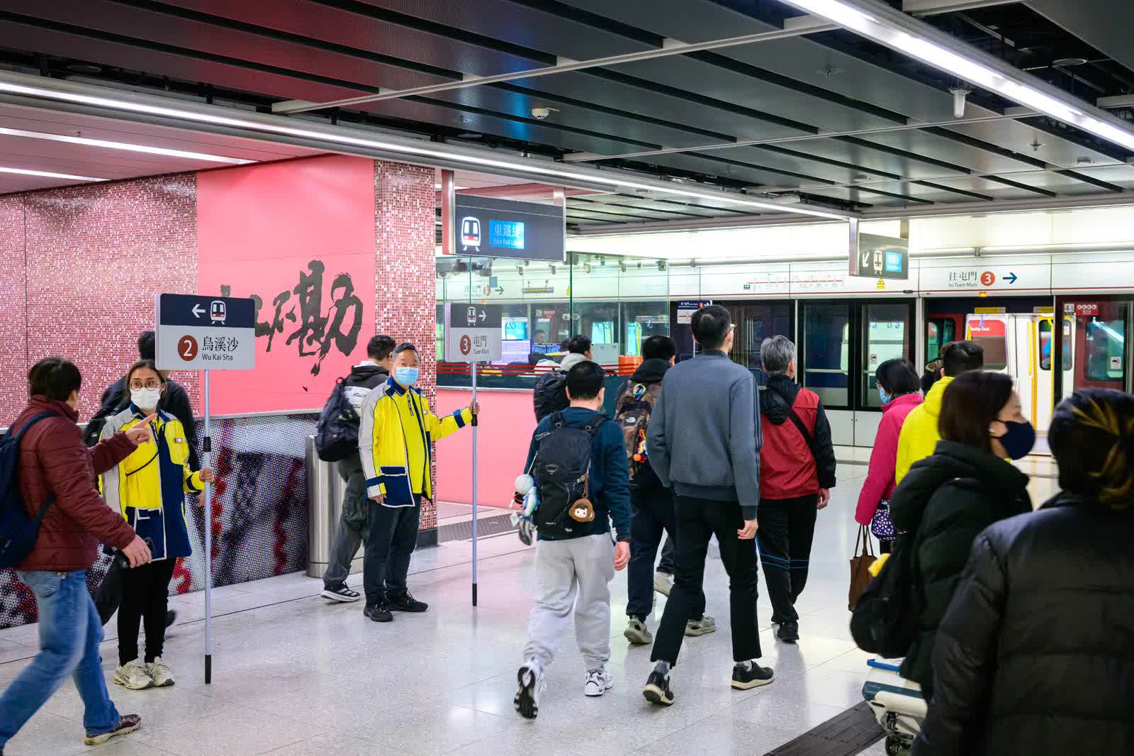 港鐵加派超過150位職員指引及協助乘客,包括職員會在紅磡站屯馬綫月台舉起大型指示牌,清楚列明月台列車行駛的方向以便乘客辨識。港鐵呼籲乘客留意及配合現場職員指引,並感謝乘客的體諒及配合。