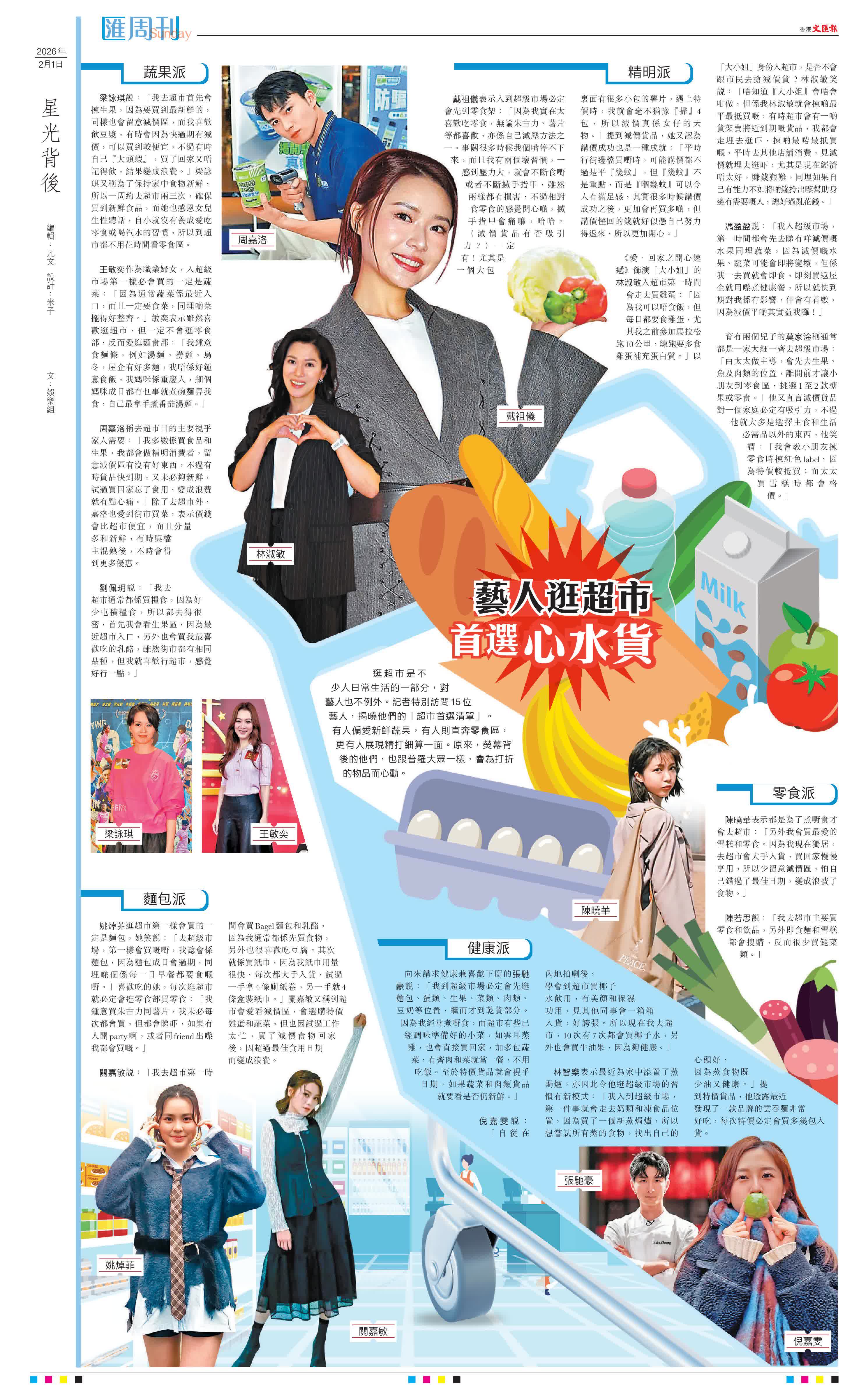 (文:娛樂組)逛超市是不少人日常生活的一部分,對藝人也不例外。記者特別訪問15位藝人,揭曉他們的「超市首選清單」。有人偏愛新鮮蔬果,有人則直奔零食區,更有人展現精打細算一面。原來,熒幕背後的他們,也跟普羅大眾一樣,會為打折的物品而心動。