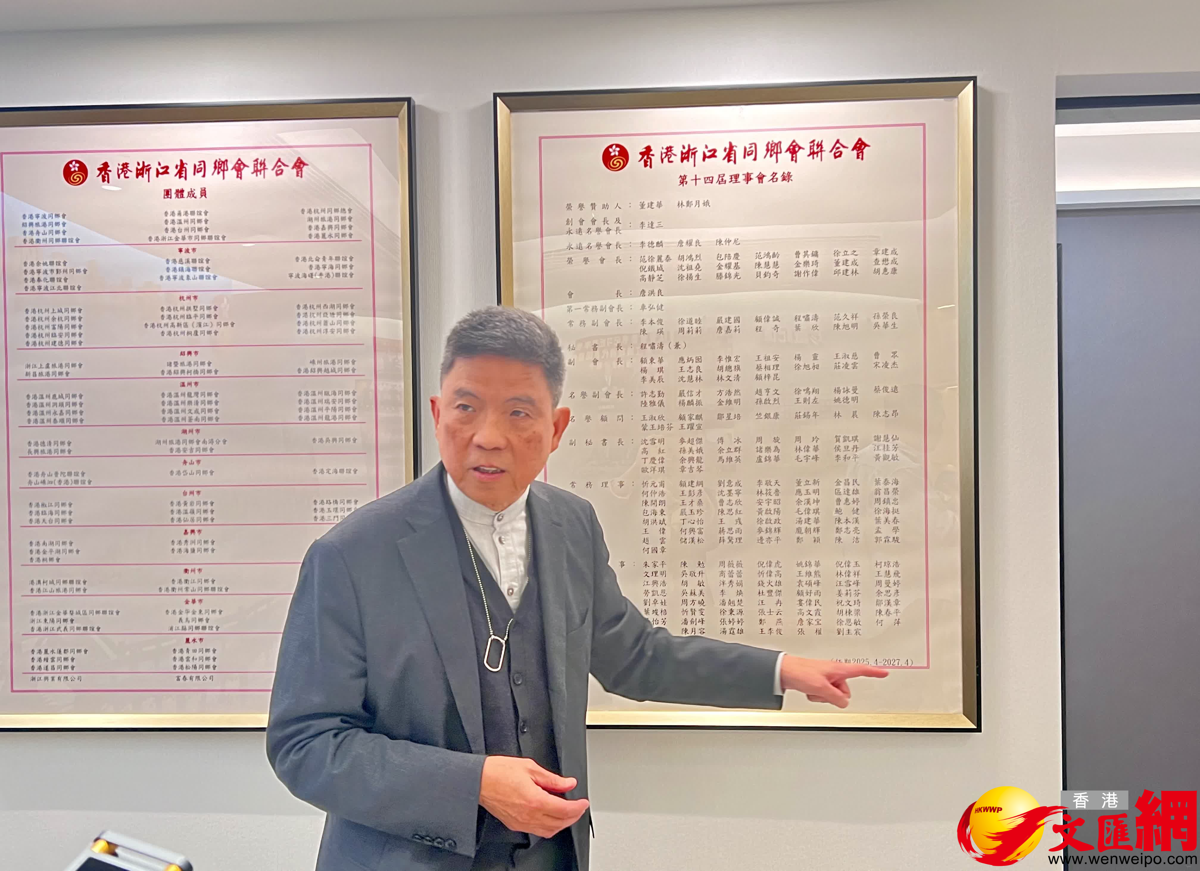 他表示:「我希望浙聯會(香港浙江省同鄉會聯合會簡稱)能夠成為香港青年溝通內地的一個平台,不僅僅是對於浙江籍的香港青年,而是面向所有的香港青年,都可以跟隨我們浙聯會這一平台前往浙江、大灣區以及內地其他城市實地走走看看。」