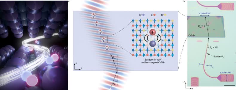 香港文匯報訊(記者 莫楠)量子科技作為國家未來創新發展的重要戰略領域,香港積極參與其中,基礎科研屢獲新猷。香港大學校長兼工程學及物理學系講座教授張翔領導的研究團隊,聯合武漢大學、華南師範大學等專家學者,在一種名為CrSBr的天然磁性半導體中,首次在實驗中觀測到由材料內部磁序直接調控產生的「激子負折射」效應,並基於此原理成功研製出可集成在晶片上的微型「激子超透鏡」,建立了「利用磁序操控納米光」的全新技術範式,為新一代未來科技的開發奠定關鍵基礎。研究成果已發表於頂級學術期刊《自然·納米技術》。