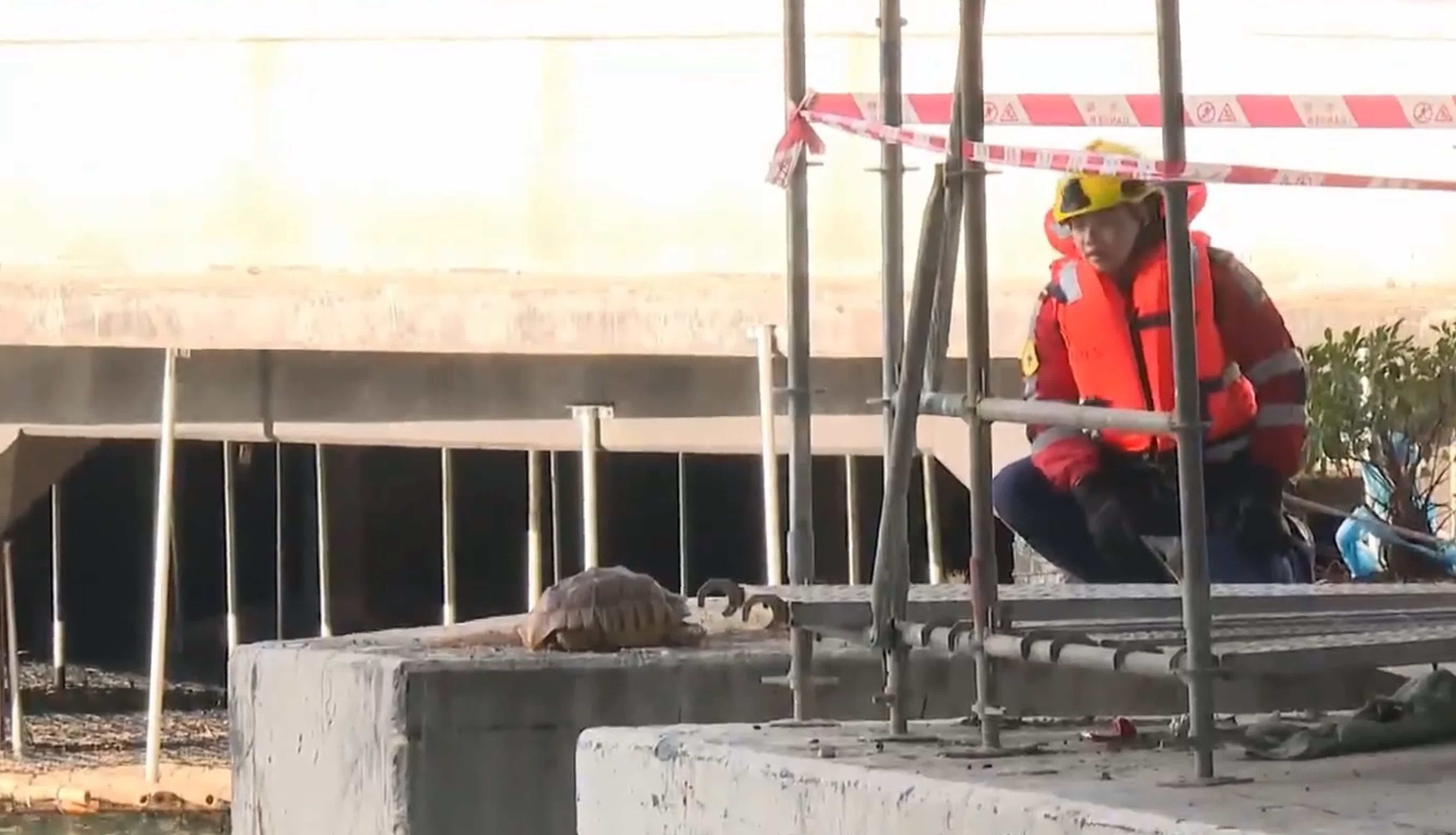 警員到場即聯絡消防處及愛護動物協會人員到場協助,期間人員繫上安全繩,小心登上該橋躉檢查及拍照記錄,證實該隻陸龜已經死亡。死去的陸龜是蘇卡達象龜,又稱為盾臂龜,身長約30厘米。由於盾臂龜屬沙漠型陸龜,是草食動物,不能在水中生存,而牠被困於四面環水的橋躉上,警方暫列作殘酷對待動物跟進調查。