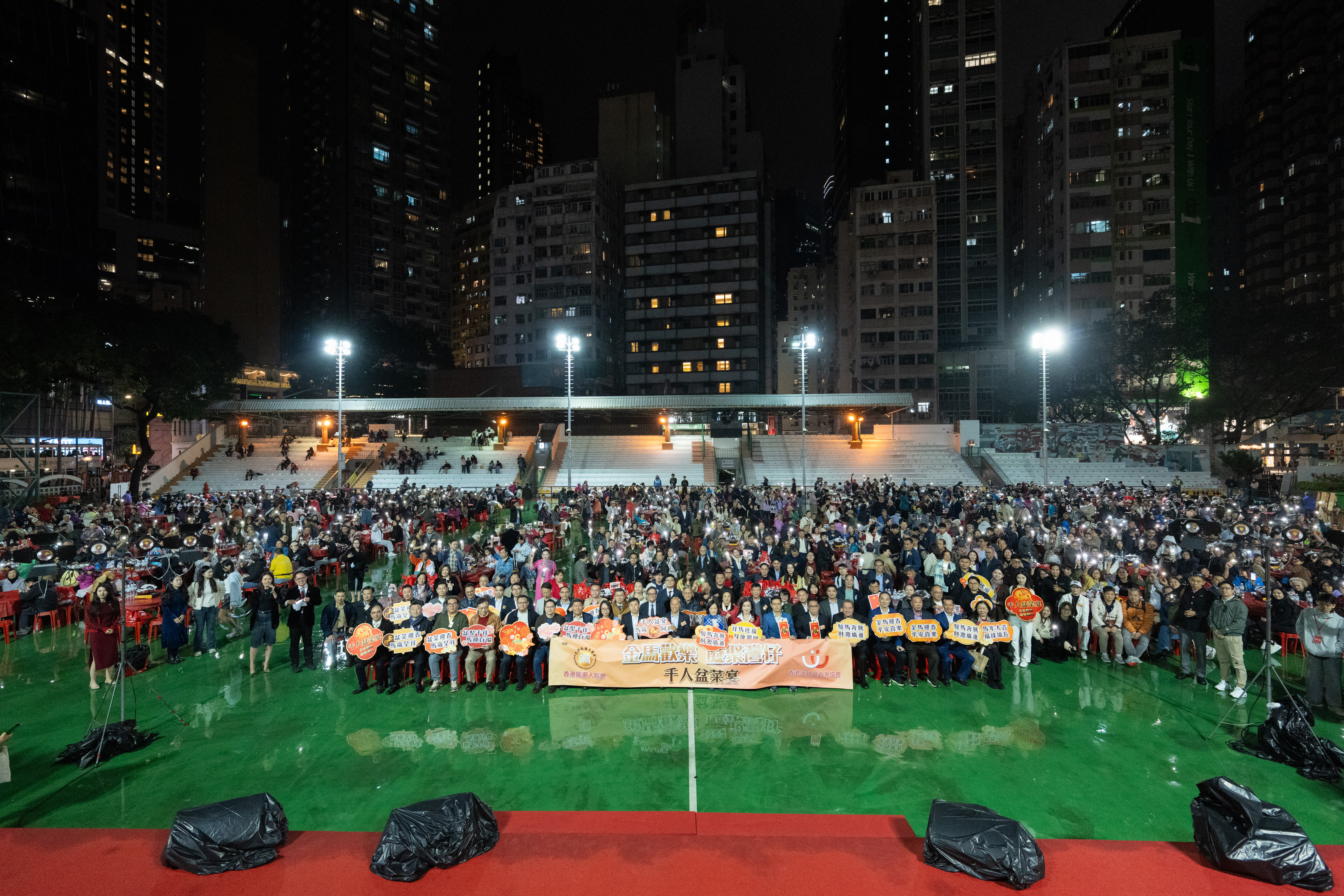香港文匯報訊 由香港區潮人聯會和香港灣仔區各界協會聯合主辦的「金馬歡樂凝聚灣仔」千人盆菜宴昨晚舉行,宴會筵開200席,逾2400位社會賢達、潮籍鄉親、灣仔街坊及各界翹楚齊聚一堂,在熱氣騰騰的盆菜香中敘鄉情、話團結、迎新春,以「潮人同心、愛拚敢贏」的精神為灣仔社區注入強大凝聚力。