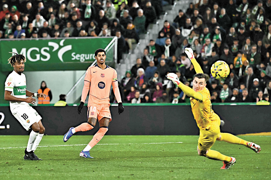 香港文匯報訊(記者 張發兒)香港時間周日(1日)凌晨西甲,巴塞隆拿憑拉明耶馬、費倫托利斯及拉舒福特入球,作客以3:1輕取艾爾切。而拉舒福特今季為巴塞在各項賽事上陣32場,攻入10球及取得10次助攻,成為本季第三位入球及助攻均有雙位數的西甲球員。
