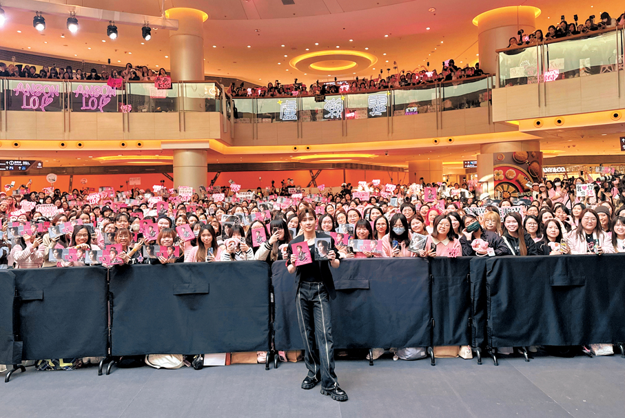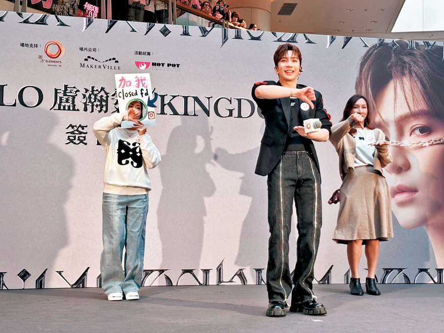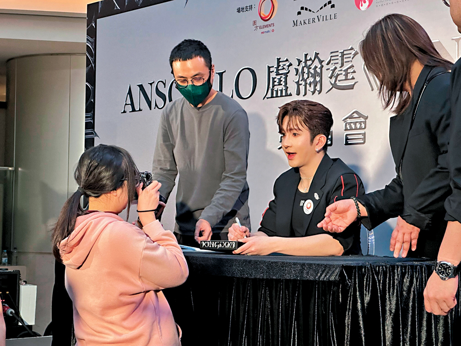 香港文匯報訊(記者 子棠)香港當紅組合MIRROR成員盧瀚霆(Anson Lo)昨日為首張個人專輯《KINGDOM》舉行簽名會,席間又與粉絲玩遊戲及自拍,雖然只有400個簽名名額,但吸引大批粉絲逼滿商場。Anson Lo預告今年出歌、拍劇及舉行演唱會,談及同公司師弟團ZPOT時,他強調各團體各有風格,他會珍惜每個工作機會。