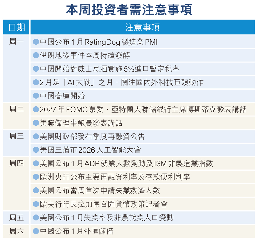 此外,每年3月都有所謂「兩會行情」,甯鉑預計,延續「十五五」規劃的政策基調,建議關注科技創新與高端製造:AI互聯網、人形機器人、自動駕駛等相關港股;提振內需與民生保障:必需消費的龍頭股,今年有望迎來脫困逆襲的機會。