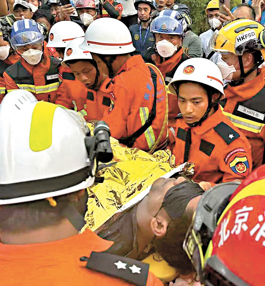 天災驟臨,地動山搖。2025年3月28日,7.9級強烈地震突襲緬甸,瞬間吞噬逾3,500條生命,城鄉破碎,哀鴻遍野。在全球各地迅速馳援之際,香港特區政府亦於災後翌日,緊急派遣由保安局、消防處、醫管局等組成的51人專業救援隊,攜同2隻搜救犬及9噸重型裝備,星夜兼程直抵重災區曼德勒,在餘震與高溫夾縫中與時間競賽,累計展開61次搜救行動,深入57處險境,最終與國家救援隊合力,成功救出一名被困逾125小時的倖存者,於斷壁殘垣中點亮生命之光。
