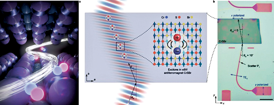香港文匯報訊(記者 莫楠)量子科技作為國家未來創新發展的重要戰略領域,香港積極參與其中,基礎科研屢獲新猷。香港大學校長張翔領導的研究團隊,聯合武漢大學、華南師範大學等校的專家,在一種名為CrSBr的天然磁性半導體中,首次在實驗中觀測到由材料內部磁序直接調控產生的「激子負折射」效應,並基於此原理成功研製出可集成在晶片上的微型激子超透鏡,建立了「利用磁序操控納米光」的全新技術範式,為新一代光學器件以及量子科技的開發奠定關鍵基礎,展現巨大產業應用前景。有關成果已於《自然·納米技術》期刊內發表。