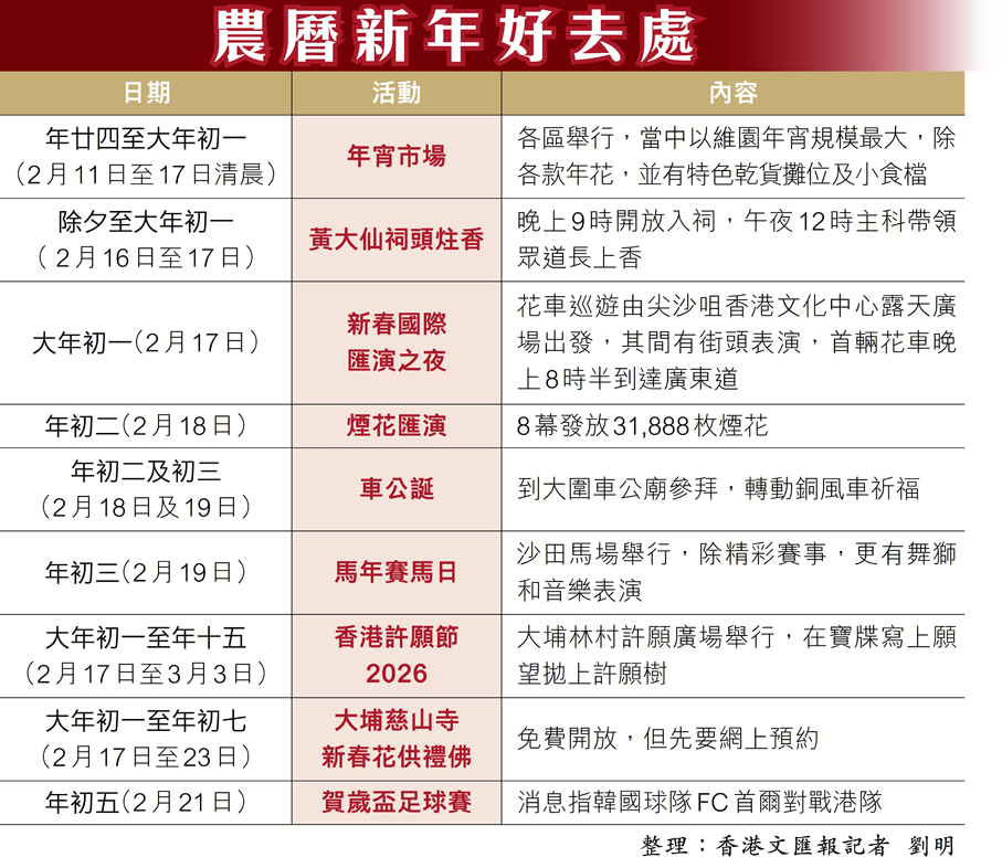 (香港文匯報記者 文森)內地春運今天(2日)開始,香港特區政府文化體育及旅遊局局長羅淑佩昨日表示,內地春節有9天長假期,而香港農曆新年的節目非常豐富熱鬧,今年香港新春煙花匯演早前落實舉辦,規模更盛大,且舊油蔴地警署屆時亦會延長開放時間,酒店業界表示訂房錄得升幅,她對農曆新年旅遊市道感到樂觀。香港旅遊業議會估計今年內地春節黃金周期間,將有接近140萬內地旅客訪港,人數較去年多。在今年多項盛事助力下,羅淑佩有信心全年訪港旅客突破5,000萬人次。