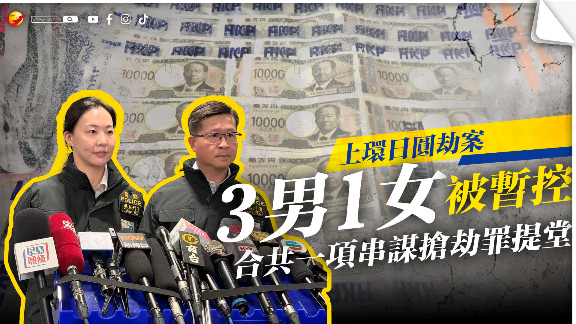 4名被告,年齡介乎23歲至53歲,分別為3名日籍男子和1名內地女子,暫被控一項串謀搶劫罪,早上由警車押至法院應訊。