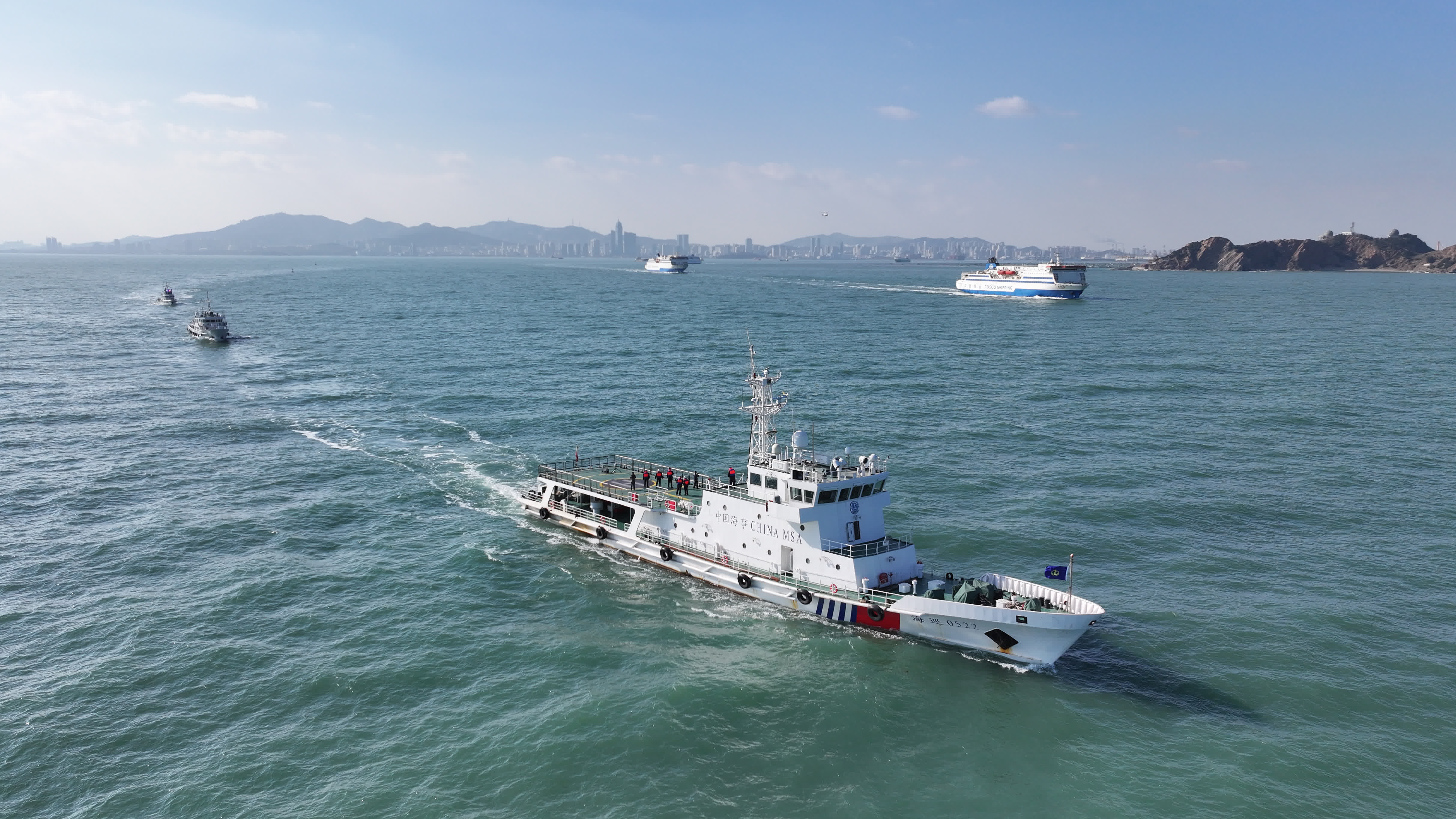 春運首日,煙台海事局聯合交通運輸部北海救助局等多家單位,在渤海海域聯合開展海空立體巡航執法。本次巡航共有3艘船艇、1架救助直升機、2架無人機參與,對魯遼省際客運航線、蓬長陸島客運航線、港口碼頭、錨地等重點水域的通航環境和船舶交通秩序進行巡查。