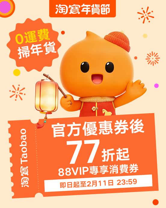 香港文匯報訊(記者 黃安琪)春節臨近,送舊近新。淘寶香港站「淘寶年貨節」新春專屬活動即日起至 2月11日,不只加大「淘咩都包!」服務力度,過億款精選好物無需湊單,即享「0 運費」直送香港,同時發放多個限時優惠,包括包郵直送、新人專享、分享回贈、聯營夥伴福利等多重權益,打造新春穿搭一站式採購服務。